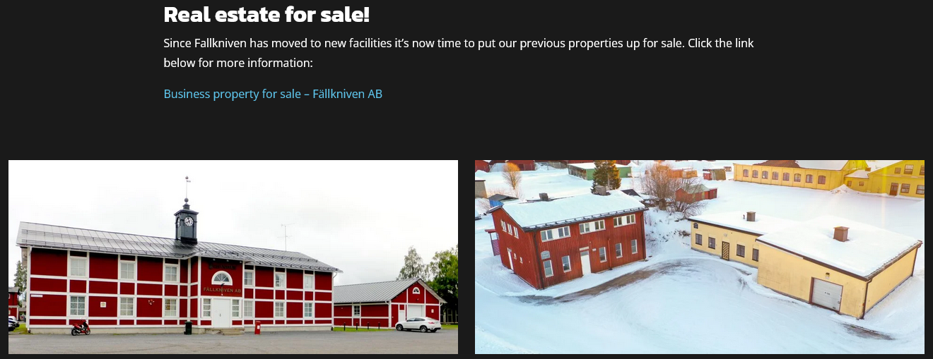 Эх, и у этих санкции сработали. Fällkniven продают свою проперти, которая была их штаб квартирой многие коды и переезжают в более мелкую и экономную фасилити.