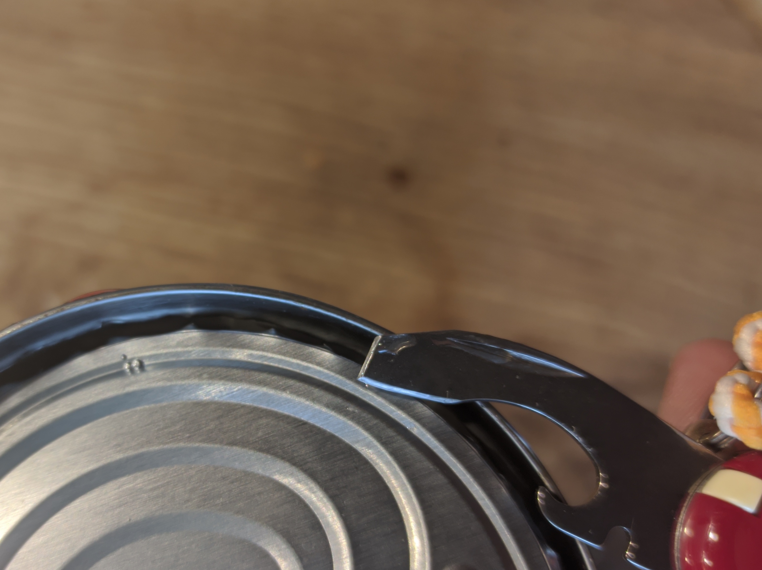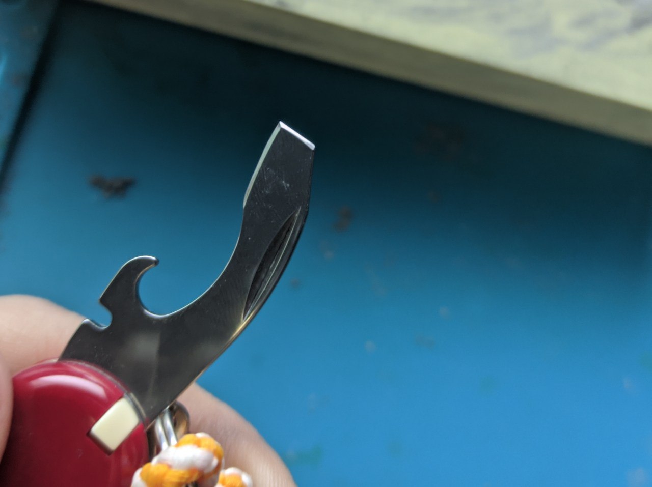 >>955826 А теперь к минусам. Комбо-тул не заточен и скорее продавливает консерву, чем режет. Исправлено на общий угол где-то в 75 градусов. Получилось что-то сродник открывашки на фокс-вульпис.