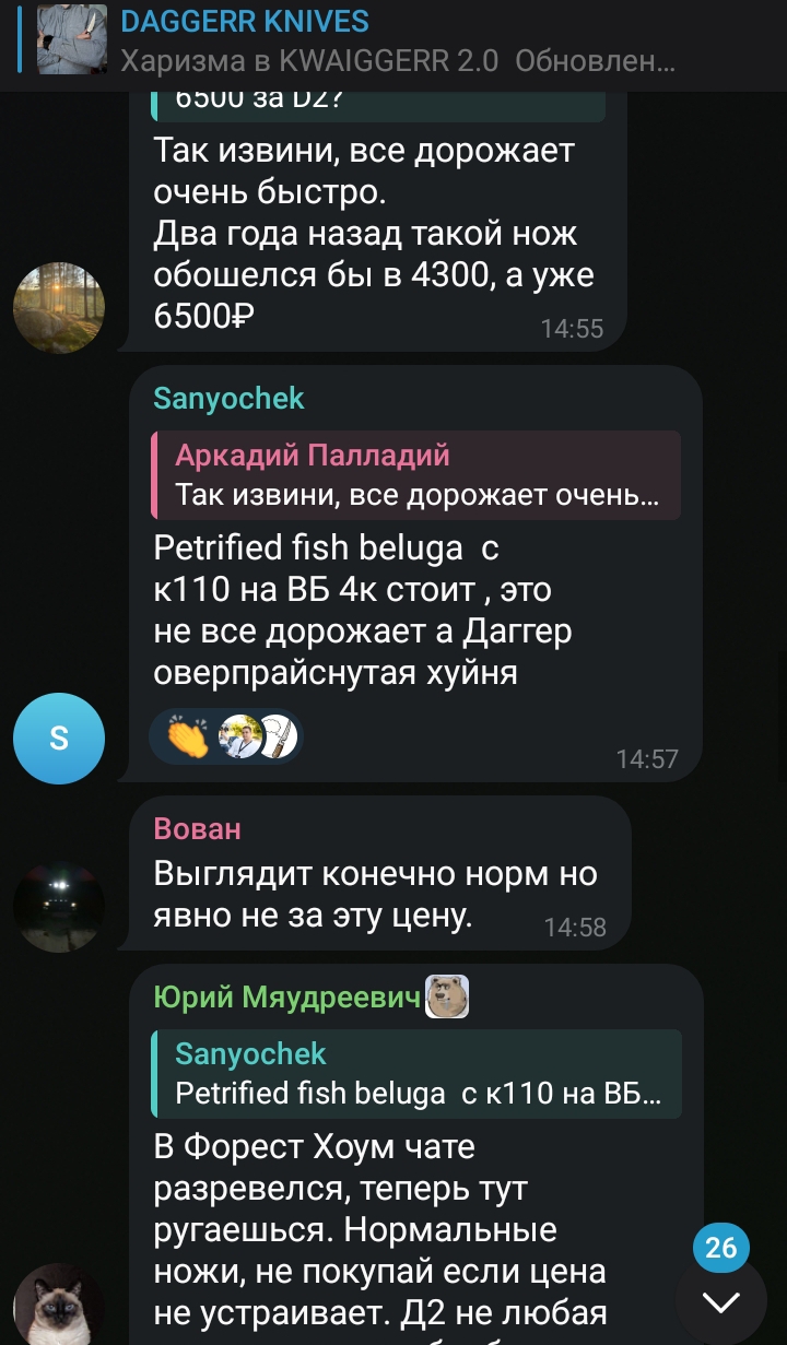 кизляр семпай из его - на мой взгляд: 1 всратой приставки суприм, это какаето замануха для зумеров? 2 тем что накладки ручки выглядят так как будто они я вляются частью калаша, благо их можно сменить что огромный + 3 в общем проебанный стиль танто 4 ножны которые не имеют пальцевого упора и вообще имют не самое быстрое и простое извлечение 5 что он без покрытия