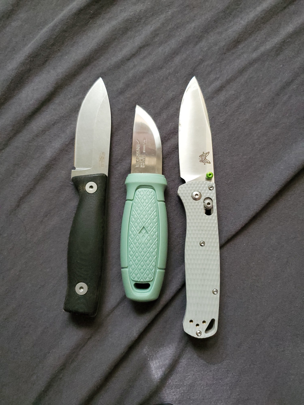 >>964908 У меня есть йоба-нож для суровых охотников из х12мф, режет он хреново (геометрия) и в качестве охотничьего не годится, но зато открыть банку или нарубить веточек для костра — норм, и не жалко. Для всего остального я запасся морами и опинелями. За 15 лет запас мор (купил как-то 5 углеродистых, 5 из нержи и одну 2000) и опинелей (тоже 5 углеродистых, 5 из нержи девяток) подошёл к концу по схеме "израсходовался от износа, потерял, был сломан придурками". И вот сейчас я смотрю на всё это раздолье ножей на рынке, и что-то ничего особо-то и не приглядывается, вот что сейчас принципиально новое и лучшее (которое враг хорошего)?