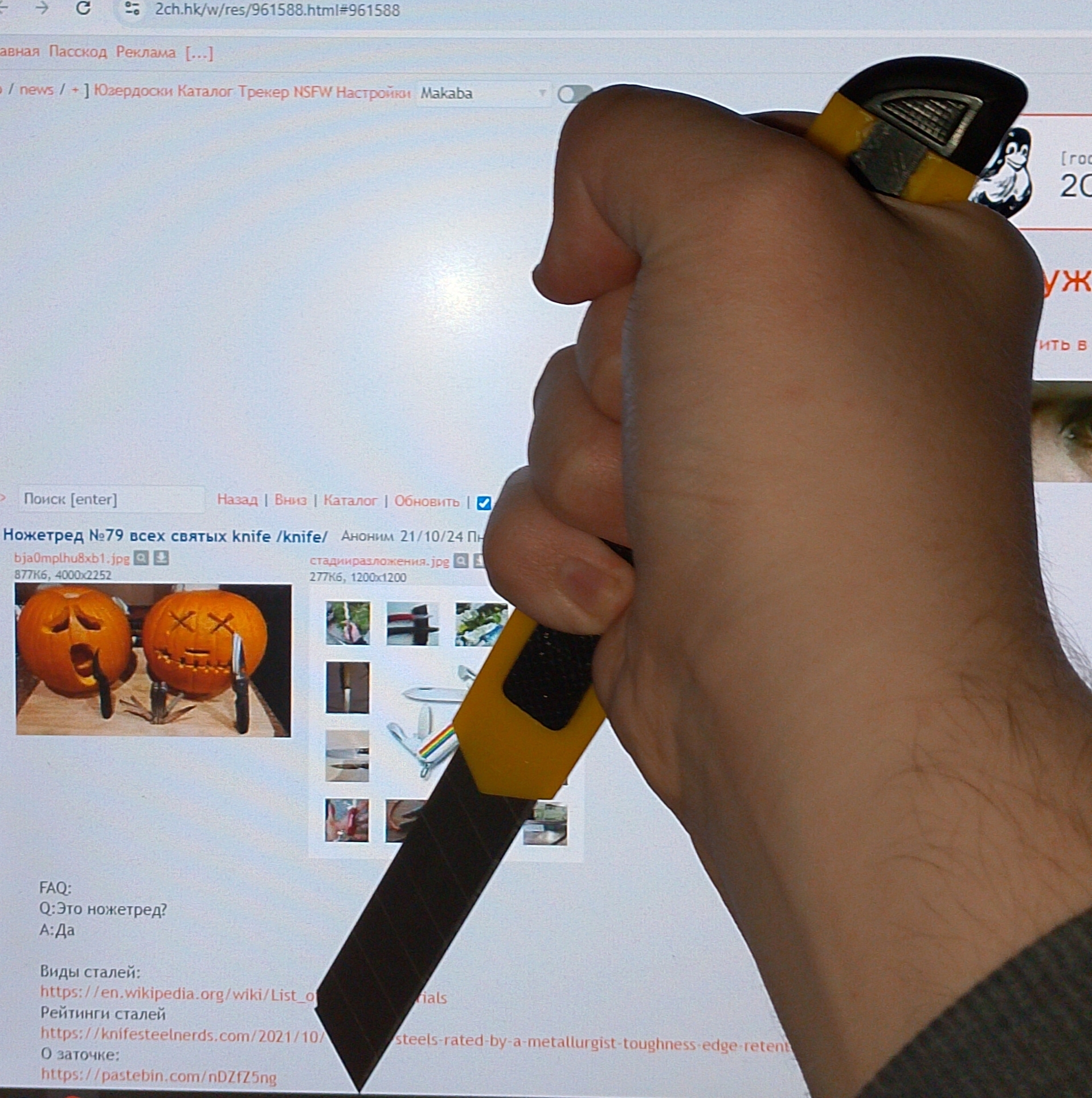Почему большинство фоточек ножей в треде — разной степени уёбищности херня без задач с упором на эстетику, тактикульность и прочие свистопердельные аспекты? Я ещё могу понять людей, которые, к примеру, не купят какой-нибудь спайдерко из-за их уёбищно уродливого дизайна, но ведь это всего лишь инструменты, ими работать надо, а не рассматривать. Или ладно, если идёт речь о ебанутых коллекционерах ножей, собирающих всякое с сомнительной коллекционной ценностью, но тут вроде все пытаются приплести практический аспект очередного поделия. И какого хера большинство посетителей выставки выглядит как пик рилейтед? Крайне неуютно себя там чувствовал, как будто пришёл на фрик-конвент без костюма. Я понимаю, заядлые охотники и рыбаки могут подзадрочить на ножи, потому что они ими часто пользуются. Я понимаю поваров, которые могут задрочиться с ножами, потому что они их используют по 12 часов в день. Но блядь, нахуя белым воротничкам ножи, вот все эти модные соевые EDC для офисных работников с недостатком тестостерона? Бутерброды резать, что ли?