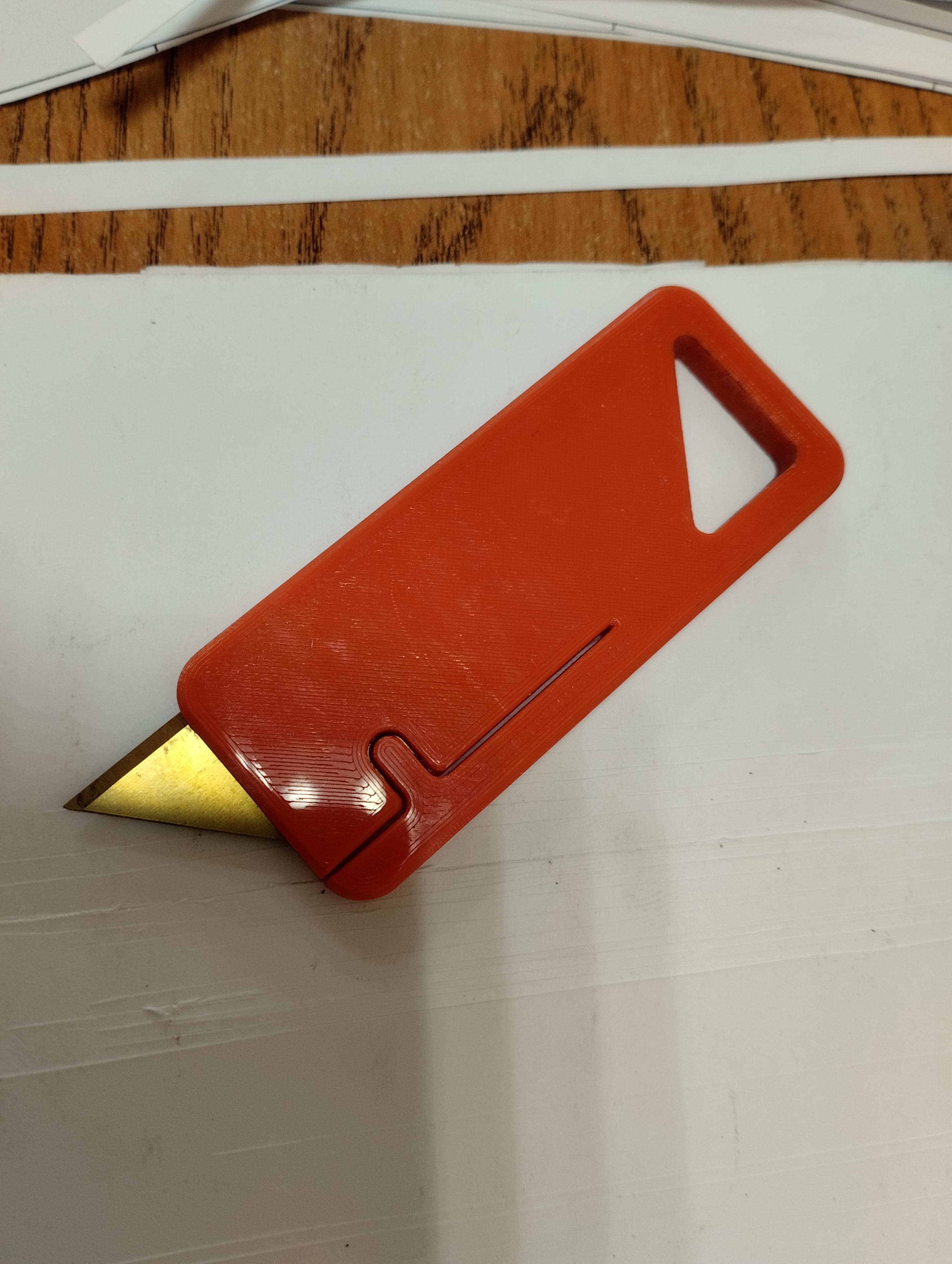 >>961615 > Ножик за 69 рублей У меня вообще самопальный пикрил из 60мм трапециевидного лезвия из 9хс с покрытием из нитрида титана и корпусом из petg с фиксатором в двух положениях (тридепечать, одна деталь). Таскаю на ключах уже около двух лет, по цене себестоимость примерно рублей 40.