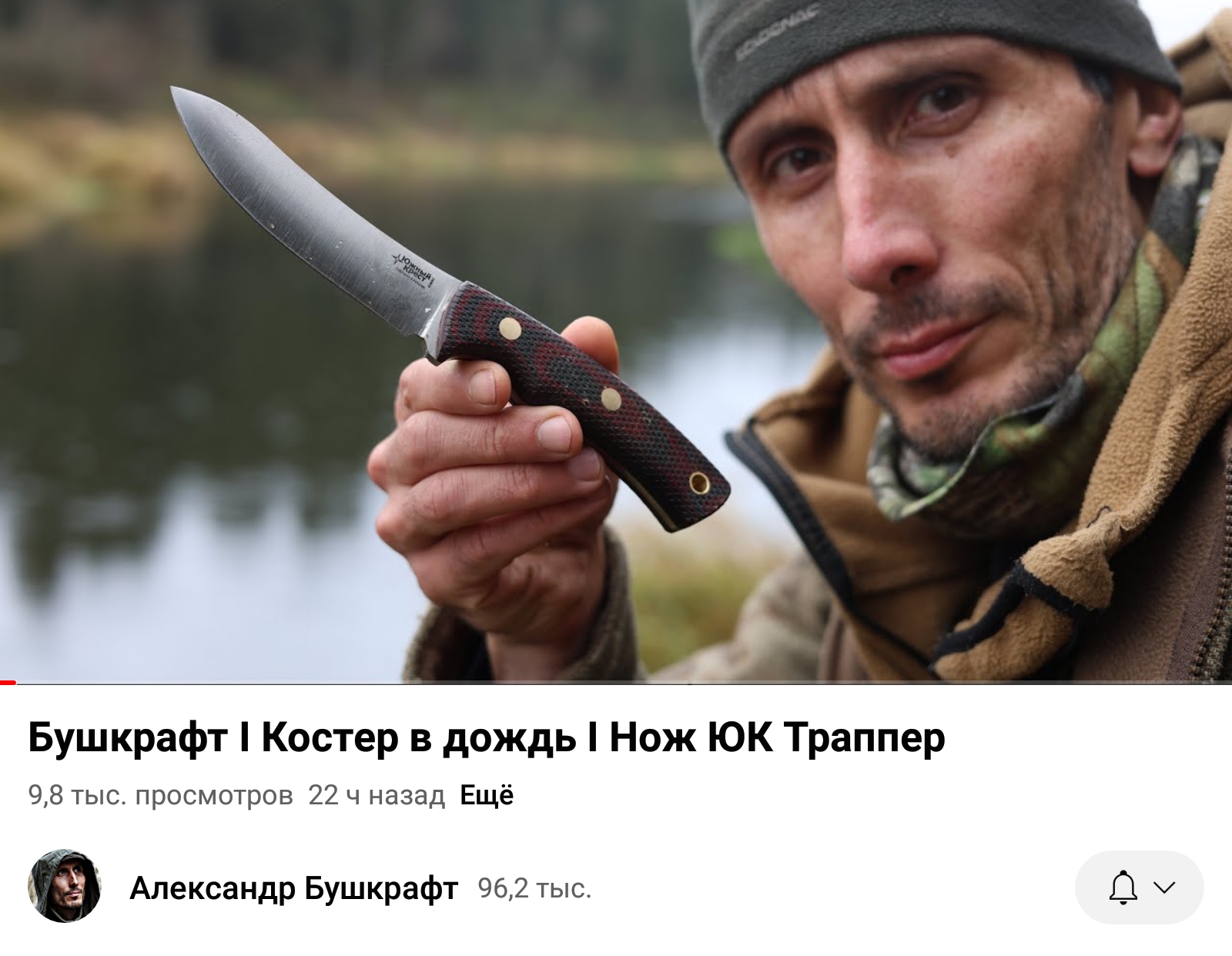 >>962674 >Да ну?! Ну да >Это по какой? Да я как понял по птице, утки, рябчики, сейчас и по рыбе. Ну насколько я понял, из просмотра нескольких видео на канале, по ножевой тематике. https://www.youtube.com/@AlexanderBushcraft