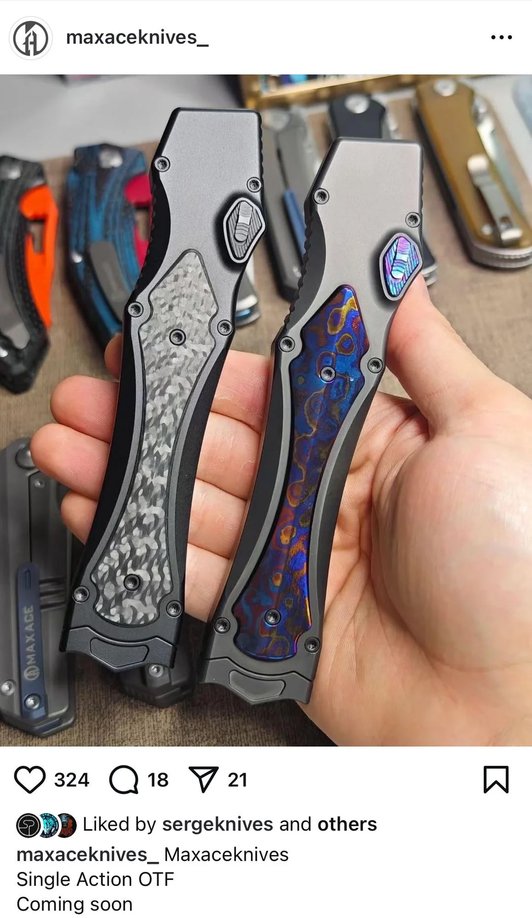 Недавно тут обсуждали gerber covert - складной AF. Так вот, Ляо (okknives) сделал реплику. Причем, крупной версии, 9см (оригинал был ещё мелковариант). Рукоять - анодированный люминь. https://aliexpress.ru/item/1005006836811729.html