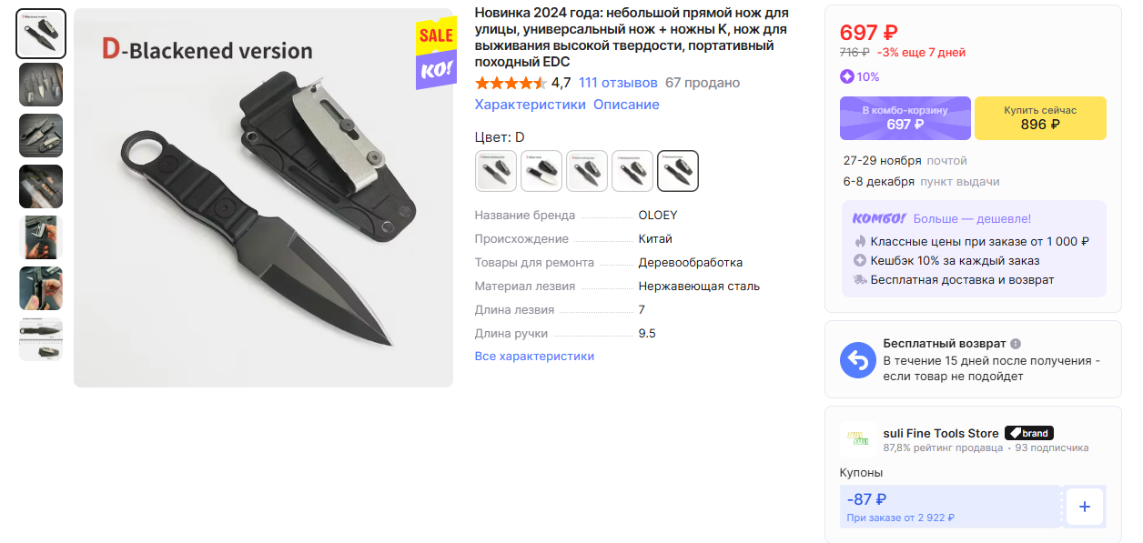 Насмотрелся я обзоров моры элдритч, особенно мойдодыра, где он пяткой себя в грудь бил, мол охуенный едсишник, каждый день ношу, копье сынишке им строгаю. И tactical+, который пиздел мол "нихуя, фины такими оленей разделывали". Заказал, жду, думаю покажу анонам, мол "смотрите какая вещь пришла, а вы пидорасы не верили, сувениркой обзывали". Пришла эта хуйня, и... таки да, сувенирка. Во-первых, там длина клинка меньше чем у ебучего викса85. Реально как хуй обрезанный на сильном холоде. Во-вторых, там и рукоять уменьшена. Это ни разу не "кансбол с уменьшенным клинком", нихуя, там все уменьшили, и эргономика пропала. В моей руке теряется, держать неудобно. Но хоть цвет красивый. Применения вижу три: 1. Если есть ребенок, отдать ему как первый нож. Зарезаться не сможет. 2. Если есть тянка, аналогично пункту 1. 3. Если окружающие любят стрелять у вас нож, носить с собой вот эту хуйню и делиться в ответ на просьбу дать нож. Чтобы больше не просили.