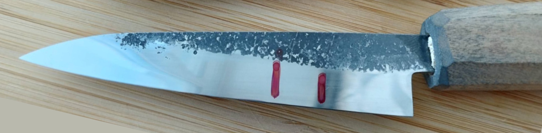 >>963428 Оптимальная для кухни на ноже типа лёгкий китайский слайсер, в обухе 2мм, полотно прямоугольник 90х200мм, ламинат, спуски очень тонкие. У меня был сантоку нож тожыро с ламинированной VG-10, какая твёрдость не знаю, но у него кромка выкрашивалась.