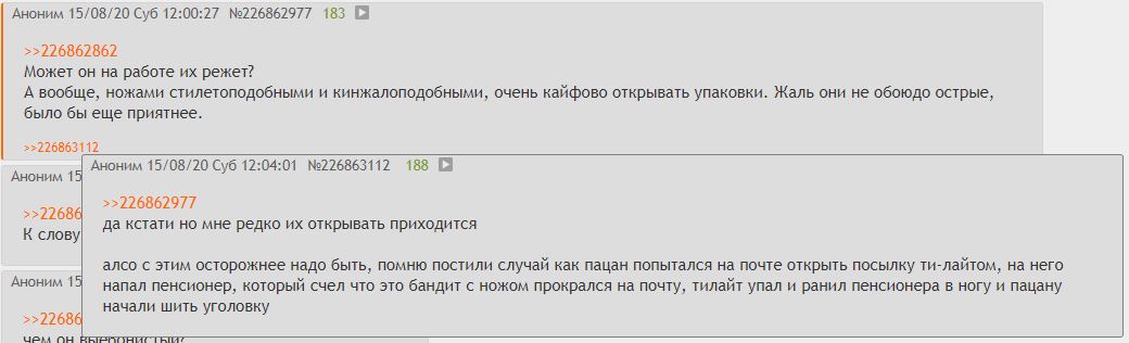 >>964425 По классике нужно посылки тилайтом шестеркой открывать на почте при скоплении бдительных граждан, которые вызовут полицию, а потом долго объяснять, что это только для срезания ниточек и что ничего плохого не имел в виду.