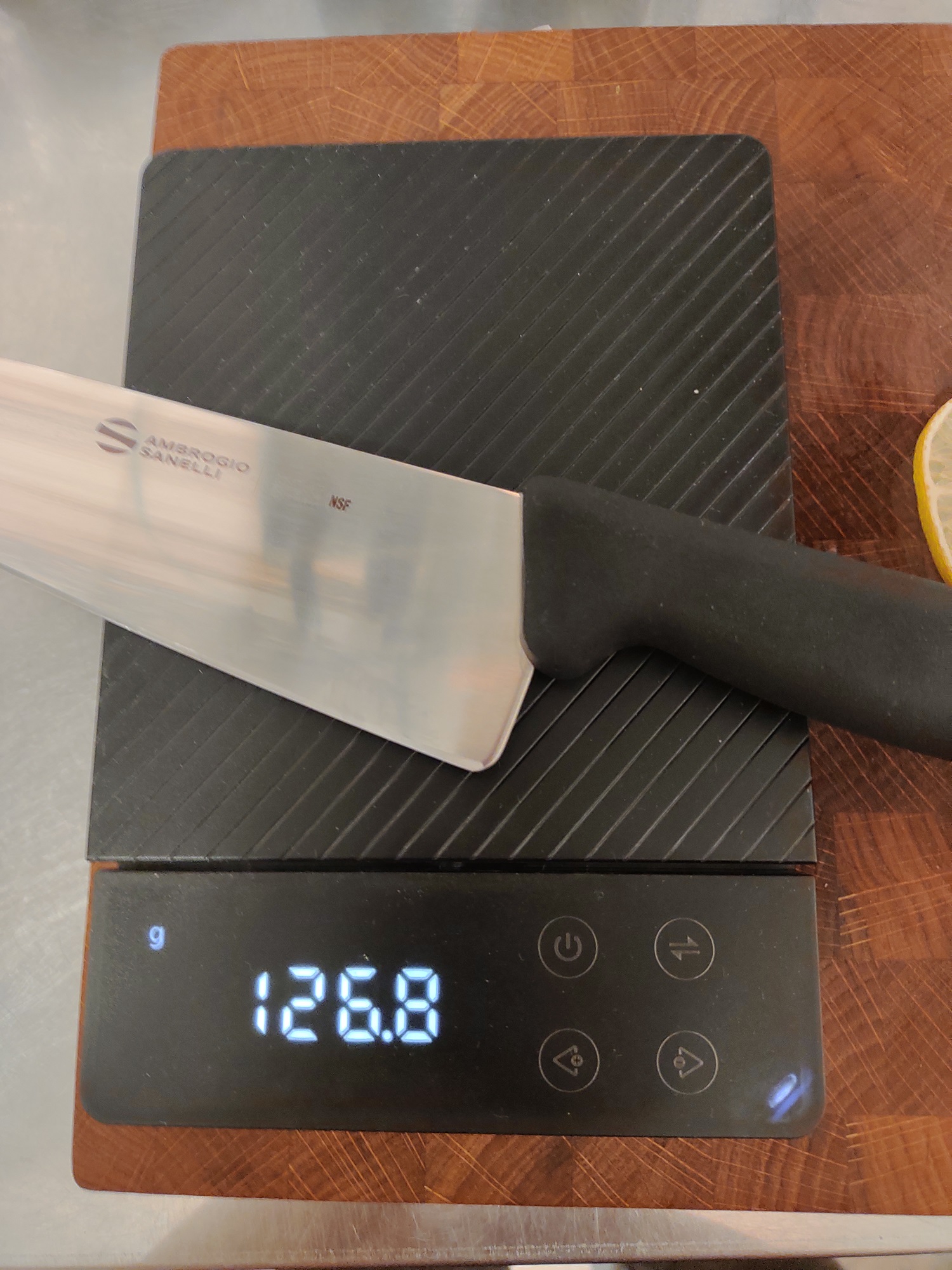 >>963914 Попробовал 20см шеф Ambrogio Sanelli из Nitro-B. Заодно Tramontina 24 см шеф из углеродки. Санелли обработан и финиширован очень хорошо (трамонтина хуже), сведение тонкое от обуха, легкий нож, баланс идеальный (на трамонтине тоже), ручка — шершавый полимер. Заточка с фабрики — ну такое, пришлось подвести микрокромку чуть, потом переточу нормально. На трамонтине фабричная заточка сразу норм, чуть подвёл на микронном бруске. Твёрдость закалки — выше, чем на обычном еврошефе и про-серии трамонтин из нержи, возможно даже чуть твёрже, чем на углеродистой трамонтине, но точно меньше 60. Кромка у ножа из Nitro B сводится очень тонко, режет весьма хорошо. Рез лучше и работать комфортнее, чем обычными толстыми еврошефами из мягкой 1.4116 и проф серией трамонтин из нержи 1.4110. На углеродистой трамонтине качество реза сравнимое. Однако, до моих эталонов качества реза (сантоку из широгами и R2/SG2 и опинеля 12 из углеродки) не дотягивают, но тут, возможно, дело в геометрии, потому что сантоку из SG2 сведён в нулину как бритва. В общем, без чудес, но внезапно годная бюджетная нержавейка с хорошим резом для кухни, может, кому надо. Обратите внимание, что нож этот — для людей с навыками работы (это, тащемта, серия для профкухни, а не для дома), поэтому высок риск, что среднестатистическая домохозяйка, привыкшая к тупым тяпкам, ухерачит подобный нож на раз-два.