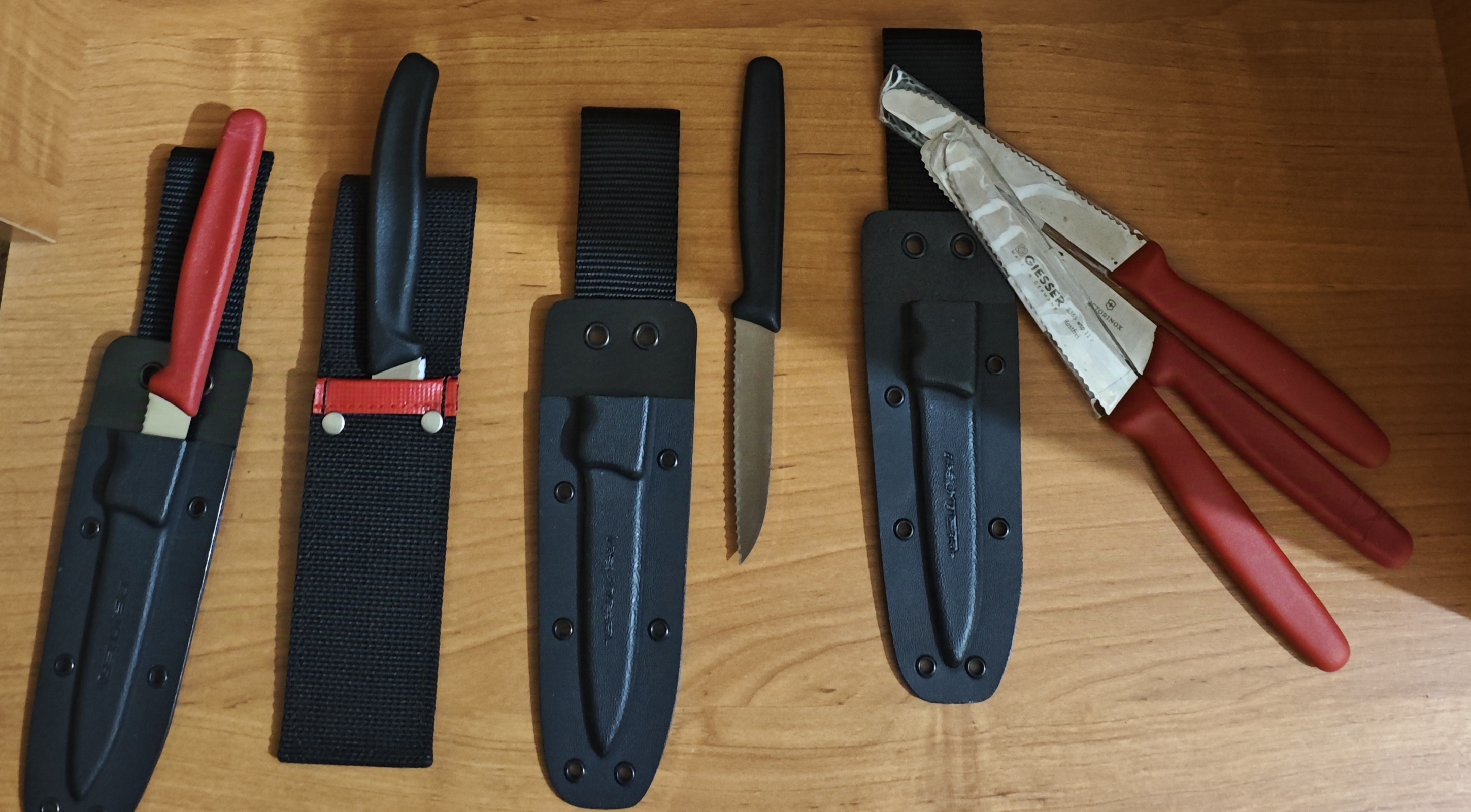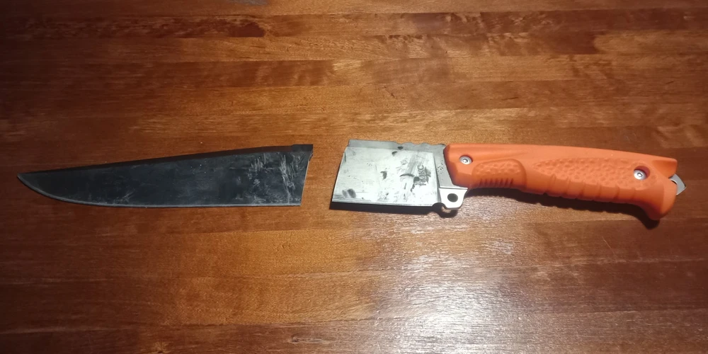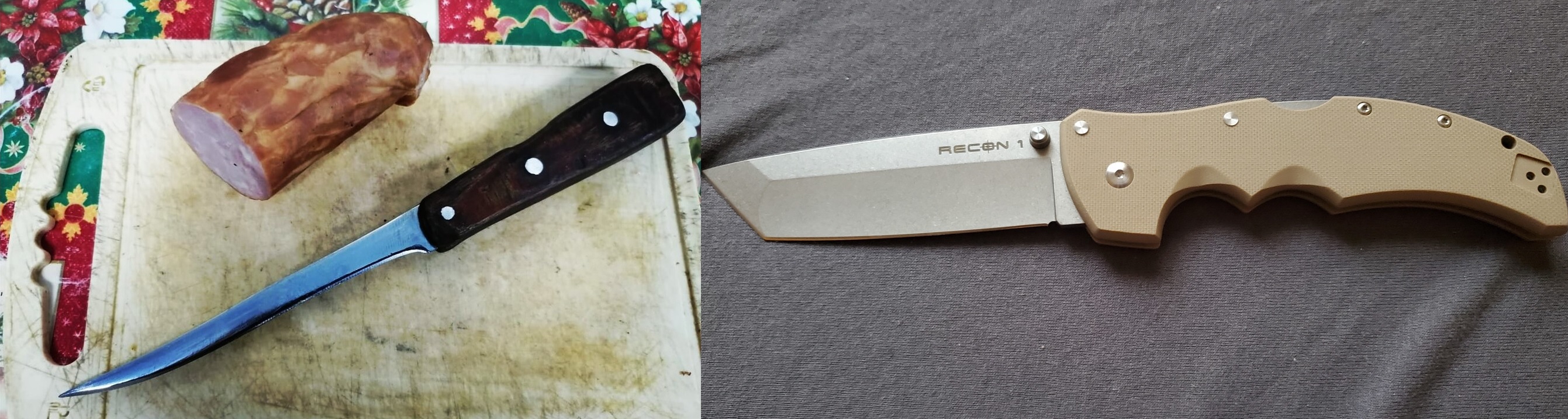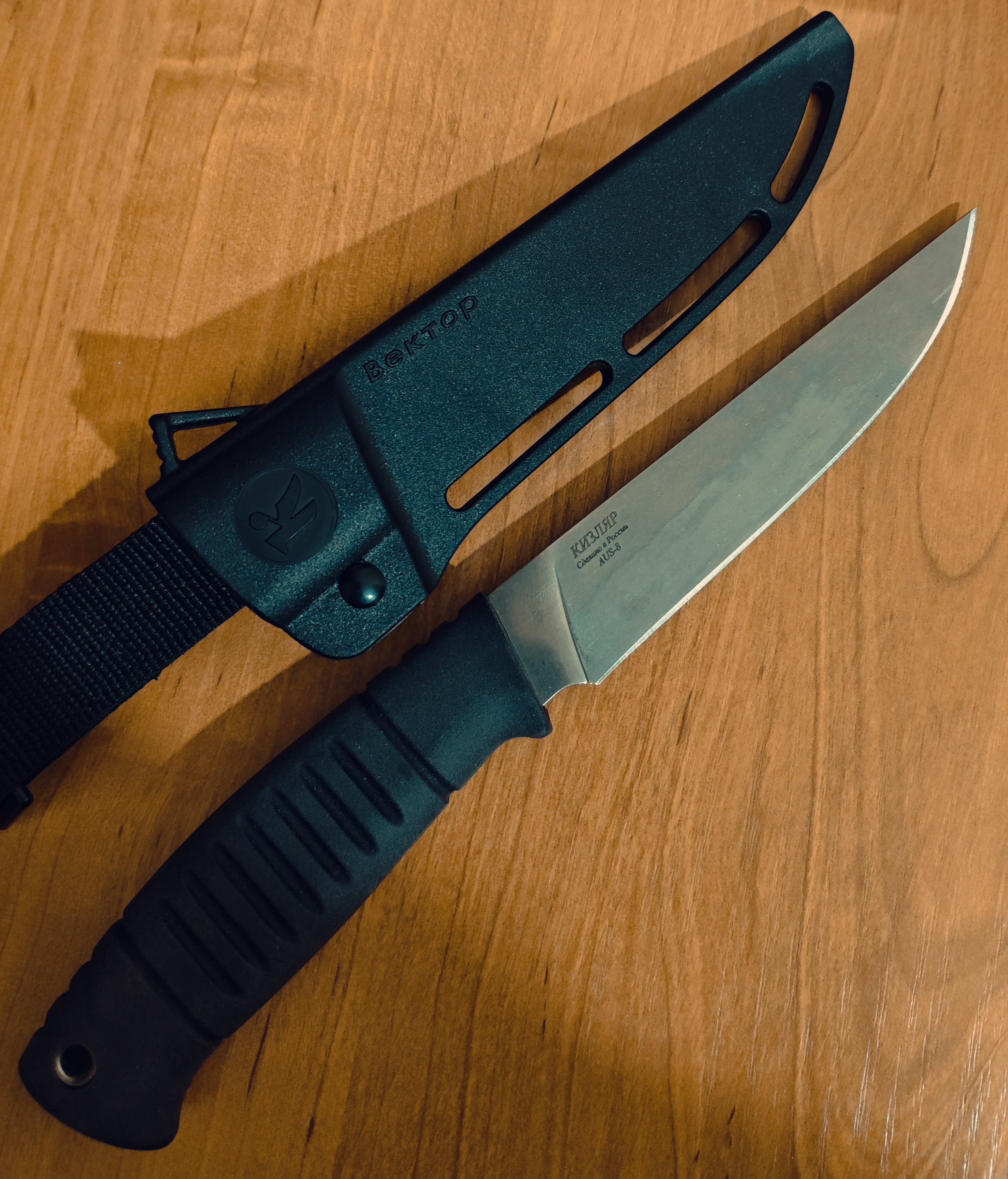 >>965666 Ножи настоящего делового мужика, а не малолетнего дрочера. Полоска стали с деревянными накладками для резки хлеба и вскрывания банок. В трудной ситуации будет использован как оружие последнего шанса, чтобы вскрыть пульсирующую артерию наклонившегося над тобой врага, который слишком рано поверил в свою победу.