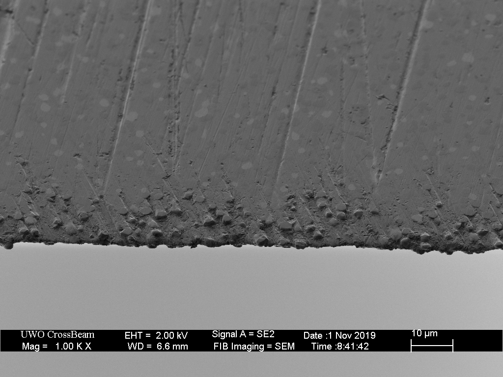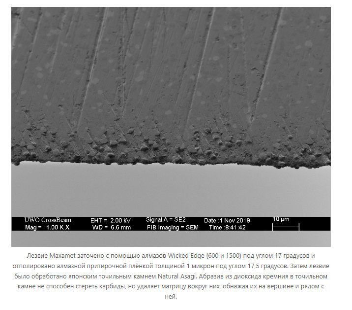 Я нарезал фото микрошлифа к360 на ленты шириной примерно 35 микрона (длина около 400 микрон)- по 6 лент примерно вдоль проката и перпендикулярно. Представим, что нижняя сторона каждой ленты это рк. Т.е. что бы нож затупился, рк должна потерять около половины ширины этой ленты. Все эти рассуждения про микропилу и прочее это как ты хочешь что бы было, как на самом деле будет уже сложнее