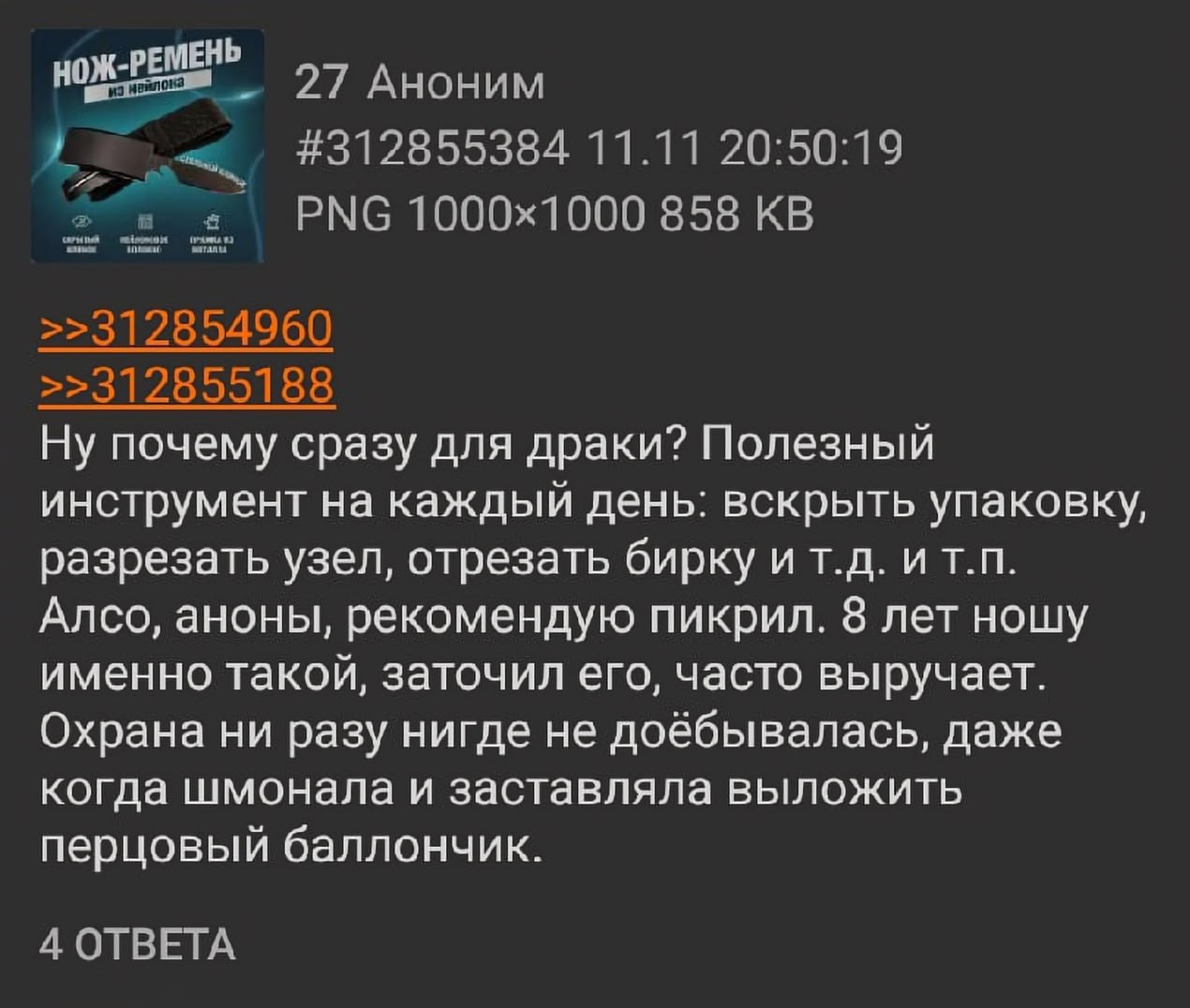 >>967899 Как у спаев что-ли? Злые языки утверждали что такой острый угол крошит лезвие. >>967902 Бусина прикольная, но на ноже носить такое грузило нахуй надо. Тем более страйдер, которые темляки перекусывает при закрытии. Есть мнение что бусина должна быть в три раза меньше, без выступающих острых углов и легкая, титан/ультем/карбон/etc.