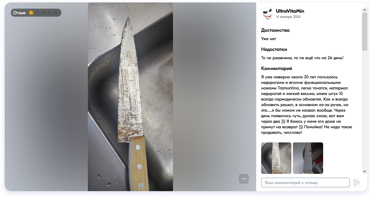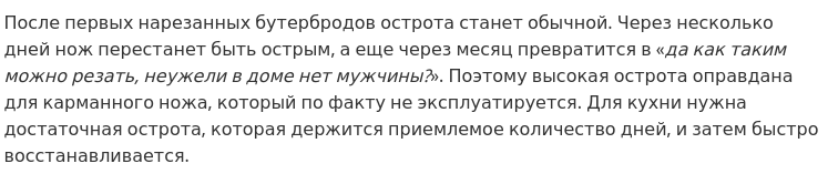 >>965537 Нет, я немного разбираюсь в ножах и ценообразовании на них. Ну был бы там какой-нибудь модный соевый порошок, еще ладно. Но 6к за этот пластилин? Пфф.