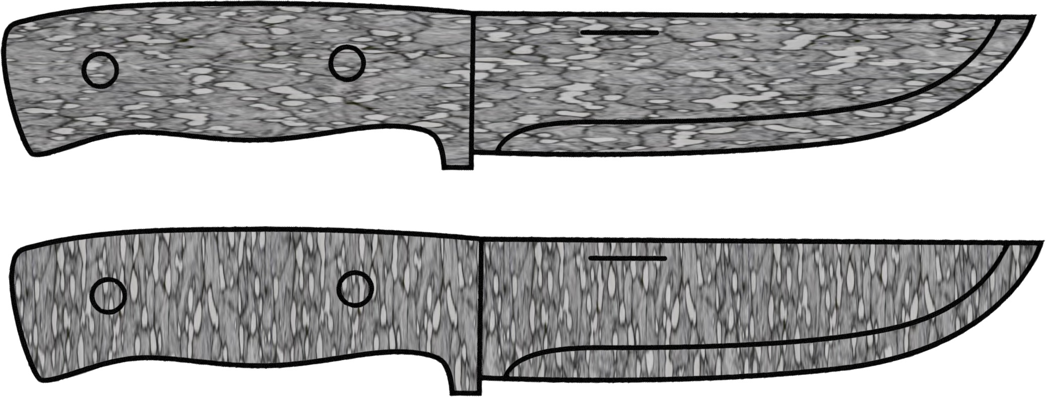 А так ли важно и нужно располагать заготовку для ножа в направлении проката, а не поперёк? Вот смотрите на пик рилейтед 1: понятно, что верхний нож, который вырезали по направлению проката, будет более стойким к излому. Но посмотрите на кромку: на ноже снизу, который вырезали поперёк проката, кромка будет более стойкая к боковым нагрузкам и при источении будет образовывать рабочую микропилку, а не отходить слоями-зёрнами. В качестве иллюстрации картинки 2 и 3, где показано, что будет, если точить вдоль, а не поперёк. Принцип сходный. Если нож не раскованный, а из полотна вырезал, то я бы наоборот поперёк проката вырезал, а не вдоль. Разве что кинжалы, стамески и ну вы поняли какие и для каких нагрузок изделия имеет смысл выпиливать вдоль.