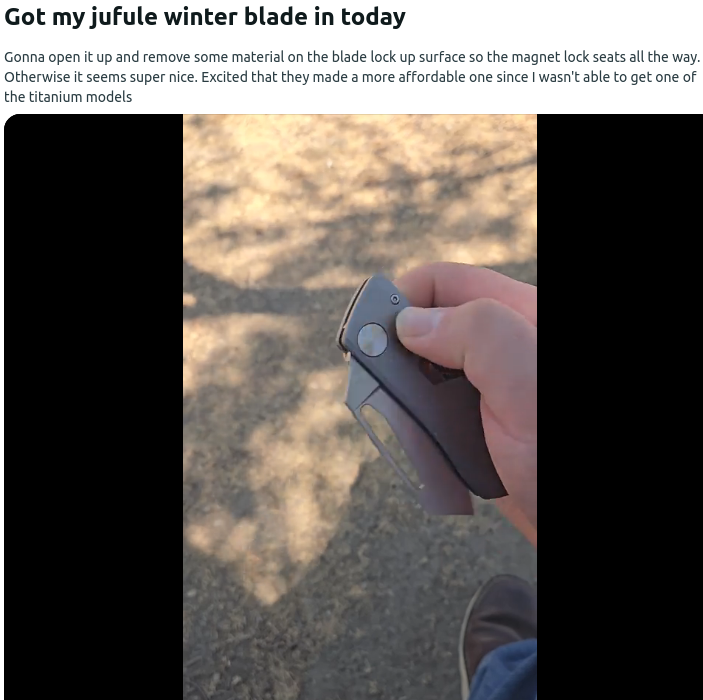 >>967086 Толоько если легкоразборный и без подшипников и других "узких" мест. >>967111 Там у них, оказывается, не одна серия с такой схемой разборки. Но сущает, что лезвие из 1.4116 в 57 HRC.