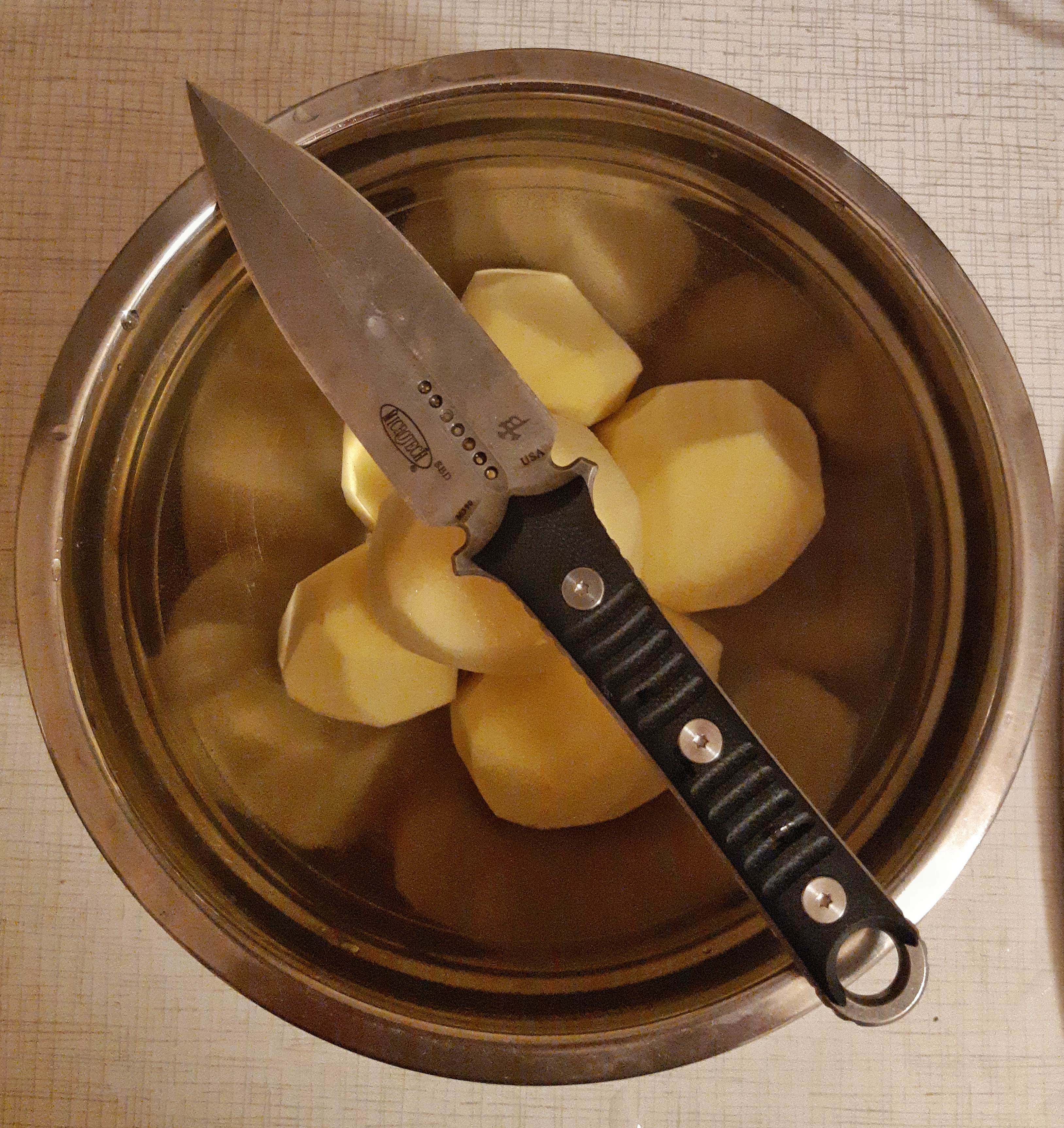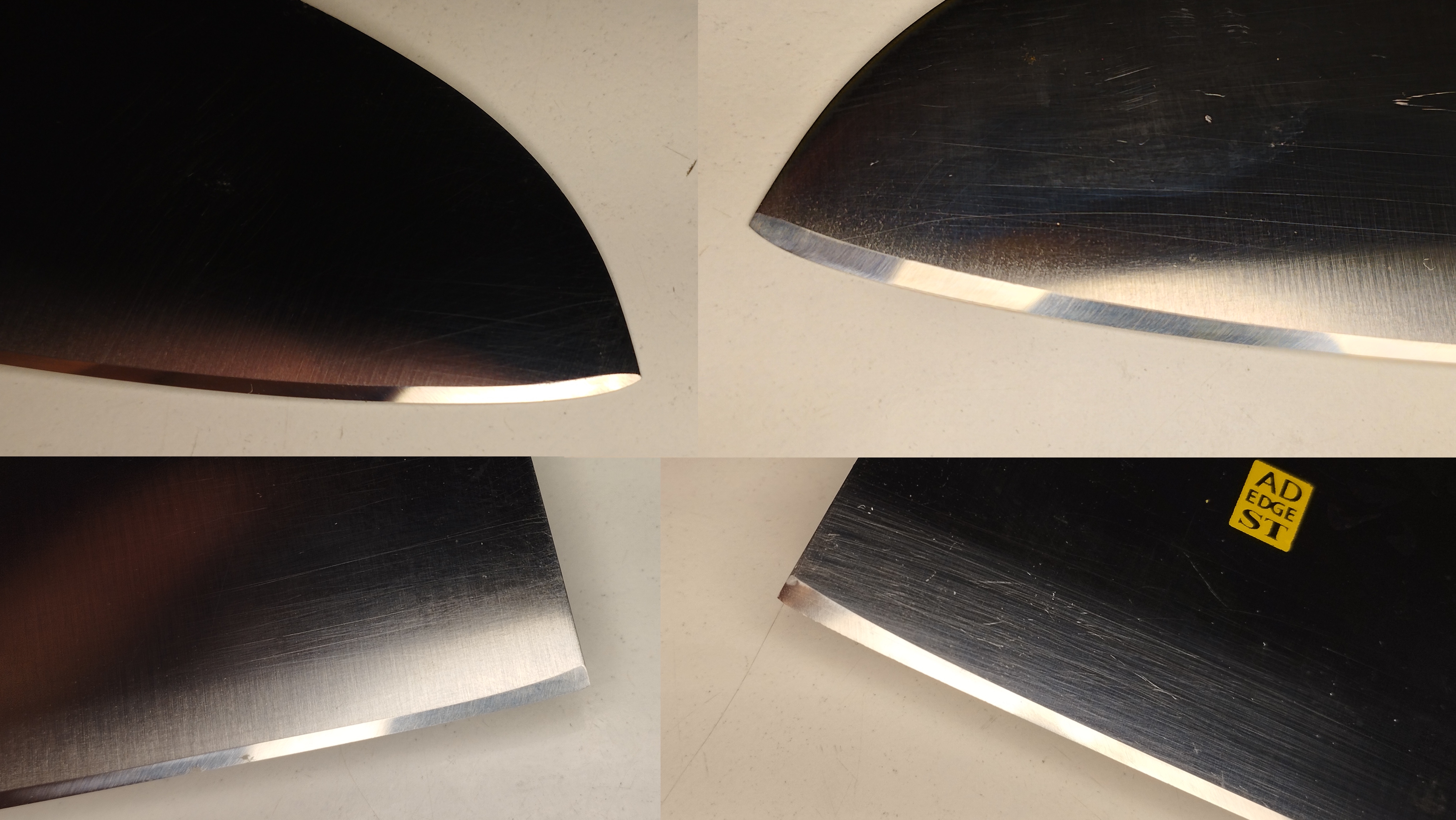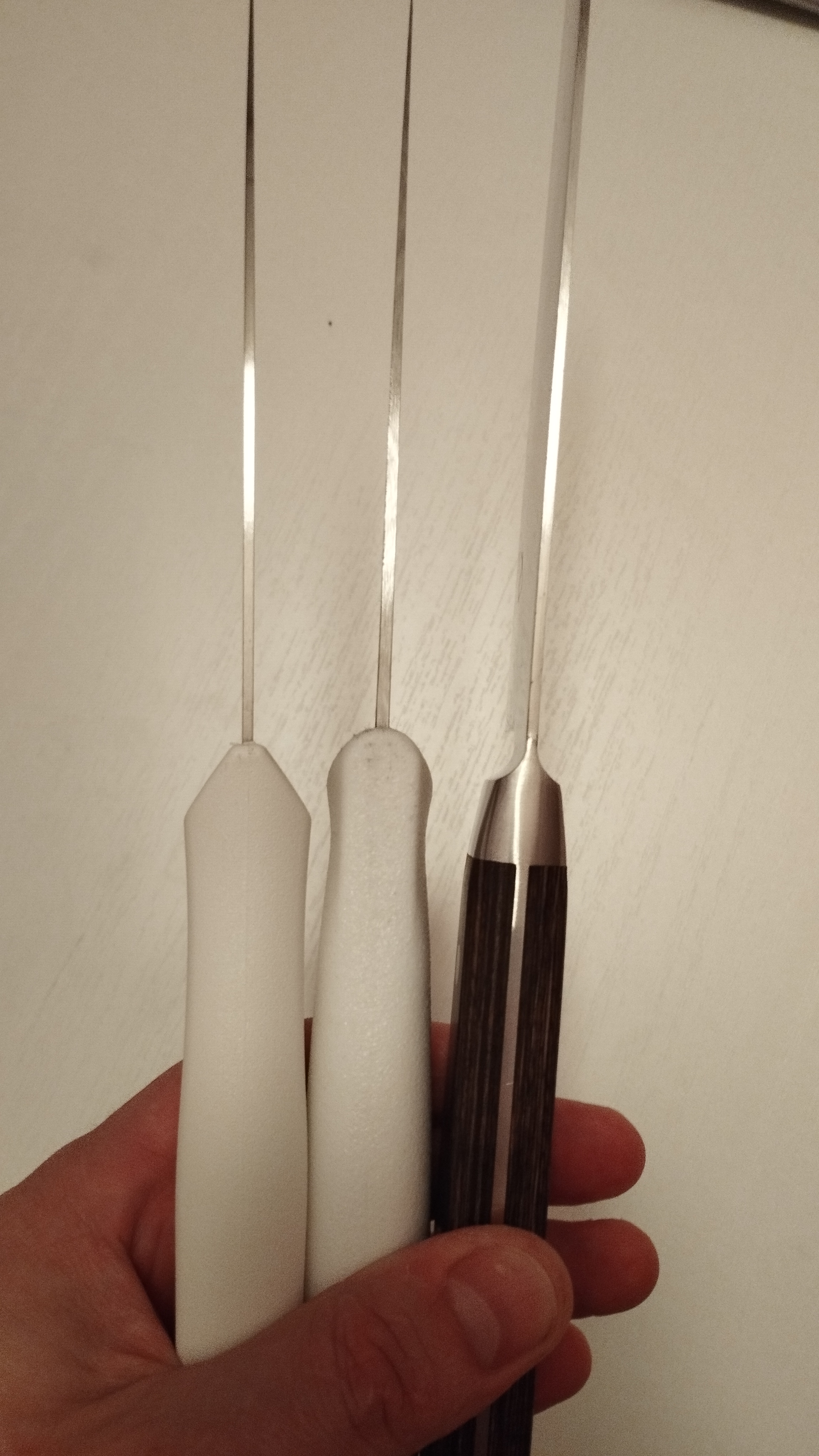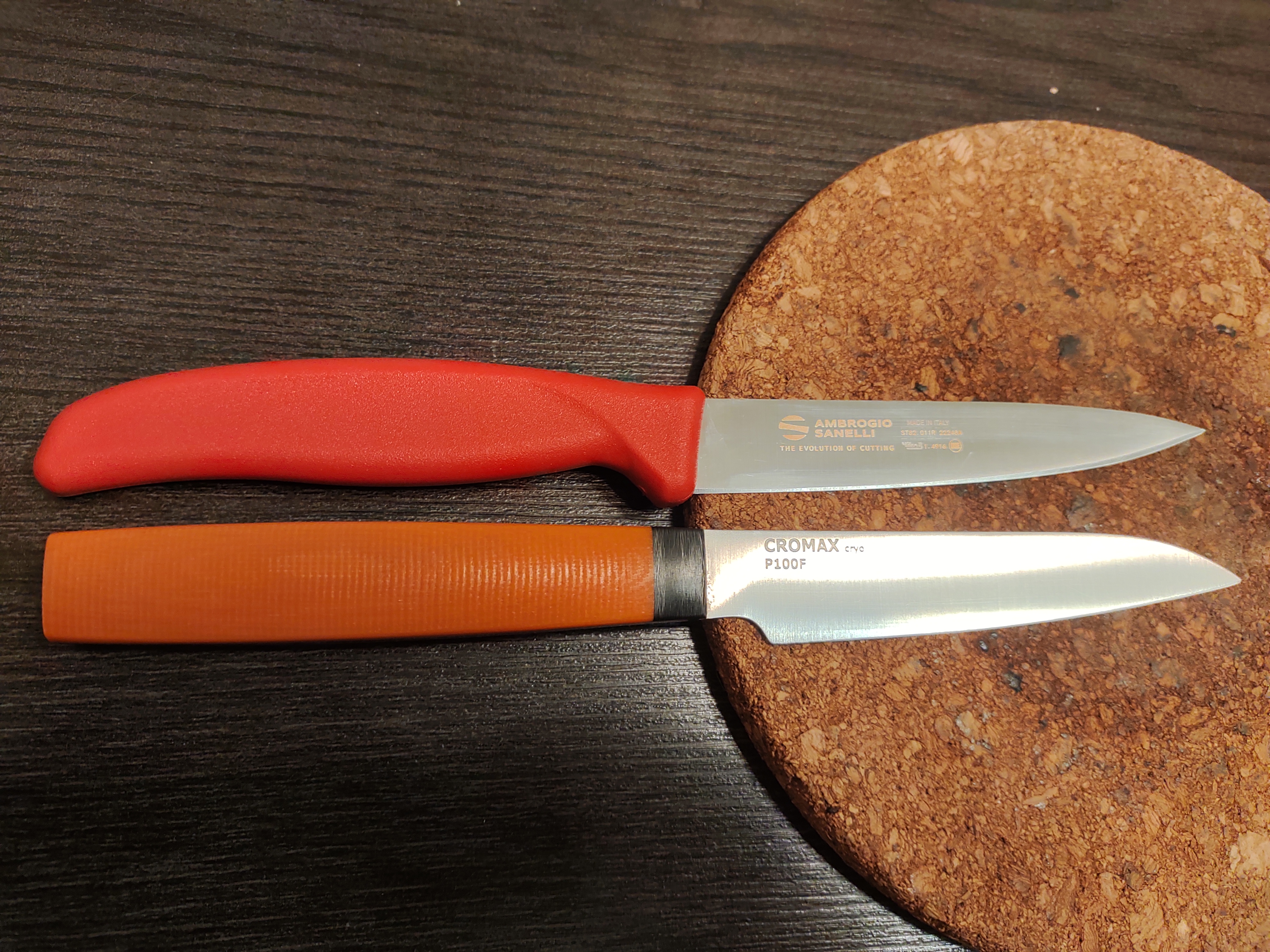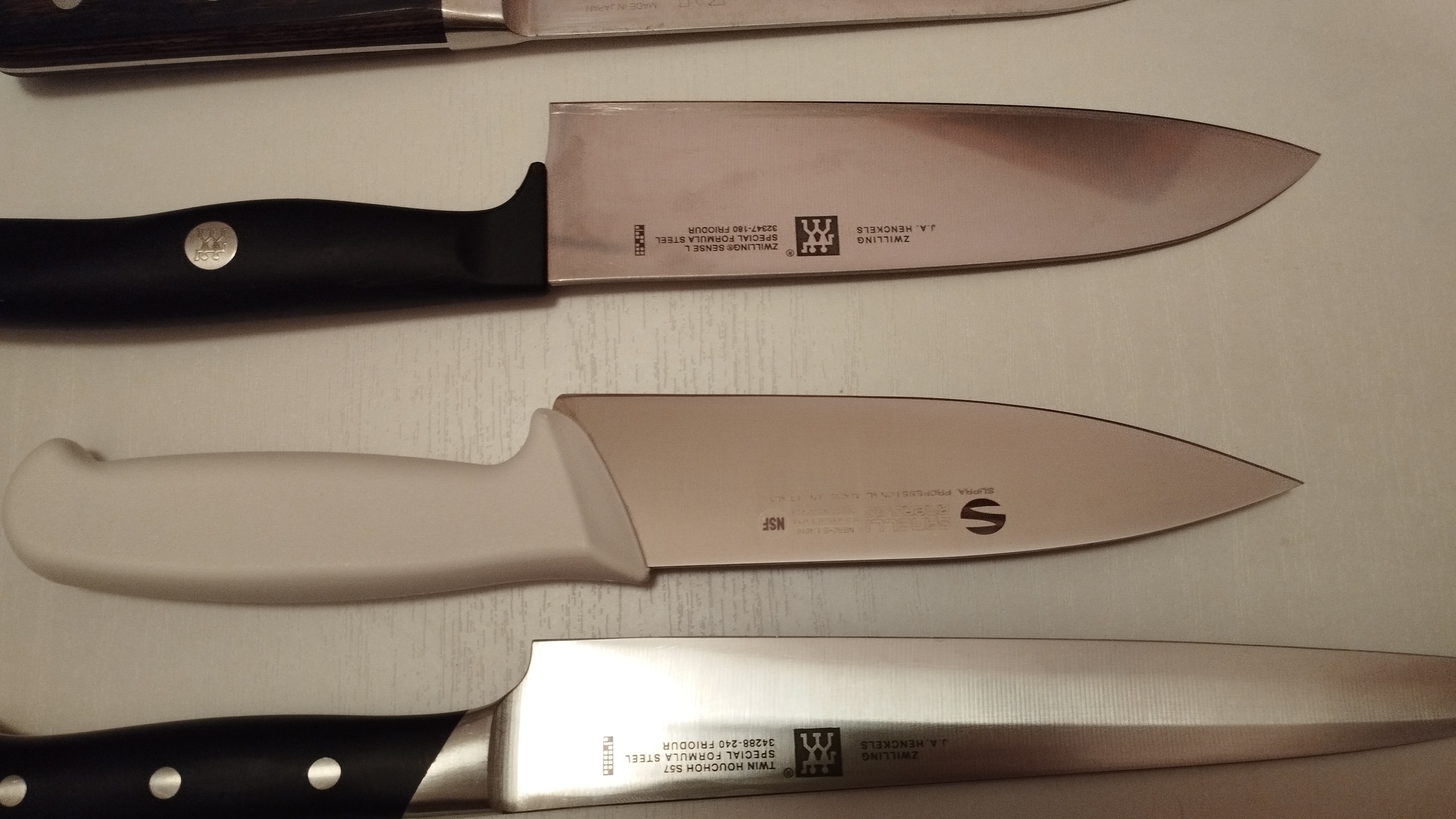 >>965146 Не рекомендую этот в частности, как и почти все недорогие изделия из 1.4116 вообще. Хреновый рез и низкая твёрдость. Если нужны хорошие бюджетные ножи для проф кухни с санитарным сертификатом NSF, то это по-прежнему проф трамонтина. Но сейчас есть вариант лучше, в прошлом треде я писал про нож Sanelli Ambrogio из среднеуглеродистой Nitro-B для профкухни, который я купил попробовать. Хороший рез, приемлемая закалка. Также мне понравился шеф трамонтина 22952/009 из углеродки 1070 с деревянной ручкой, но на профкухне ему по санитарным соображениям не место, зато дома — тоже хороший вариант. Кстати, я заказал на попробовать пару туотавней кухонных, один из китайской vg10, другой из китайской aus10. Как придут, поработаю ими некоторое время и отпишусь.
