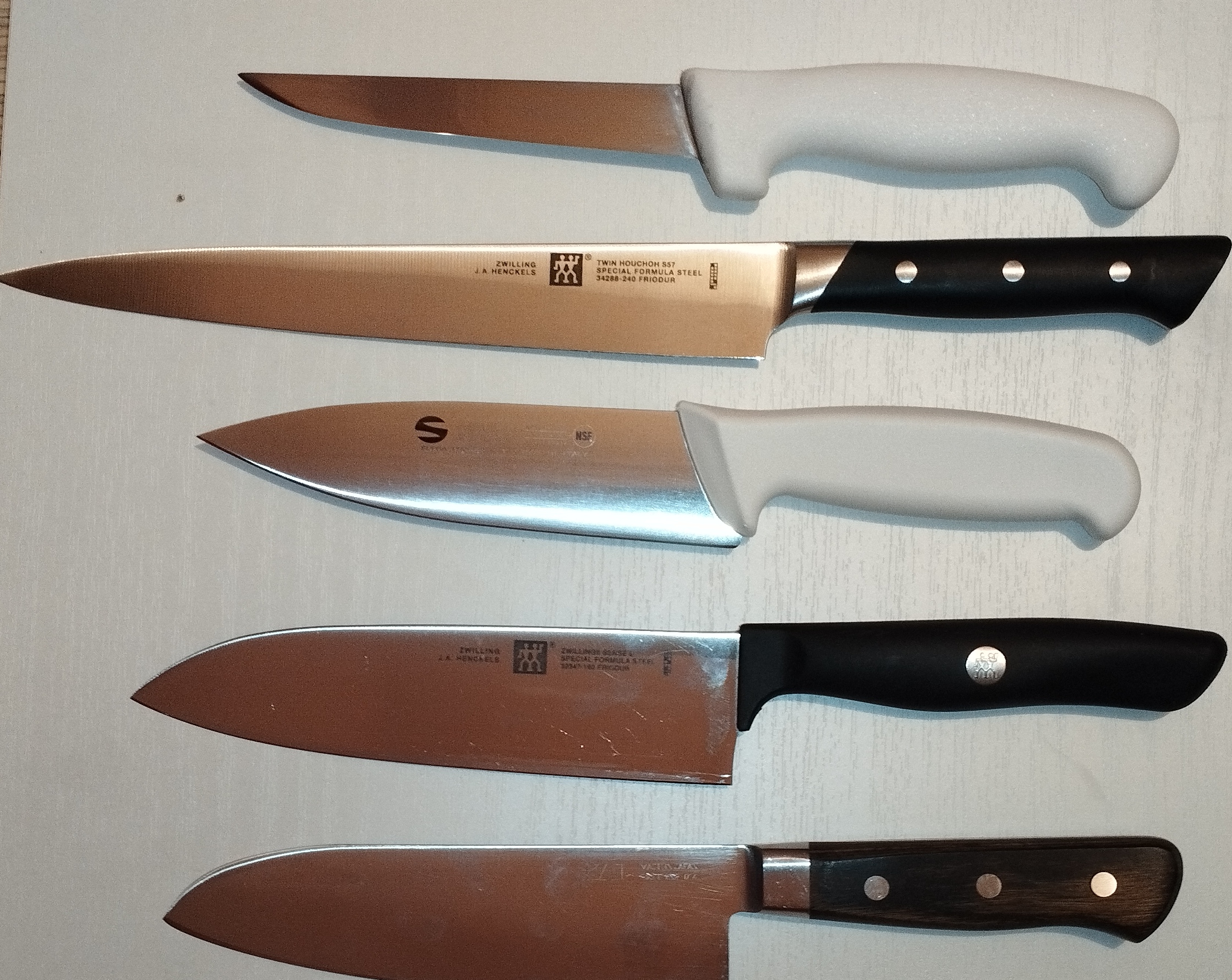 >>965355 >Повар несколько раз за смену правит Нет. >Обвальщики ежечасно правят, у них мусат прямо на столе лежит, за разделку одной туши могут даже пару раз подправить. Это правда, но ножи у них самые дешманские с рынка, а мусаты - стальные (по сути напильники). Нож сьедает до обуха. >на профкухне у ножа за час больше работы Мы вроде за домашнее применение и терли. Но если в треде есть проф-повара, отзовитесь. Вы реально берете на работу японские кухонники с 62-64hrc? Не жалко?