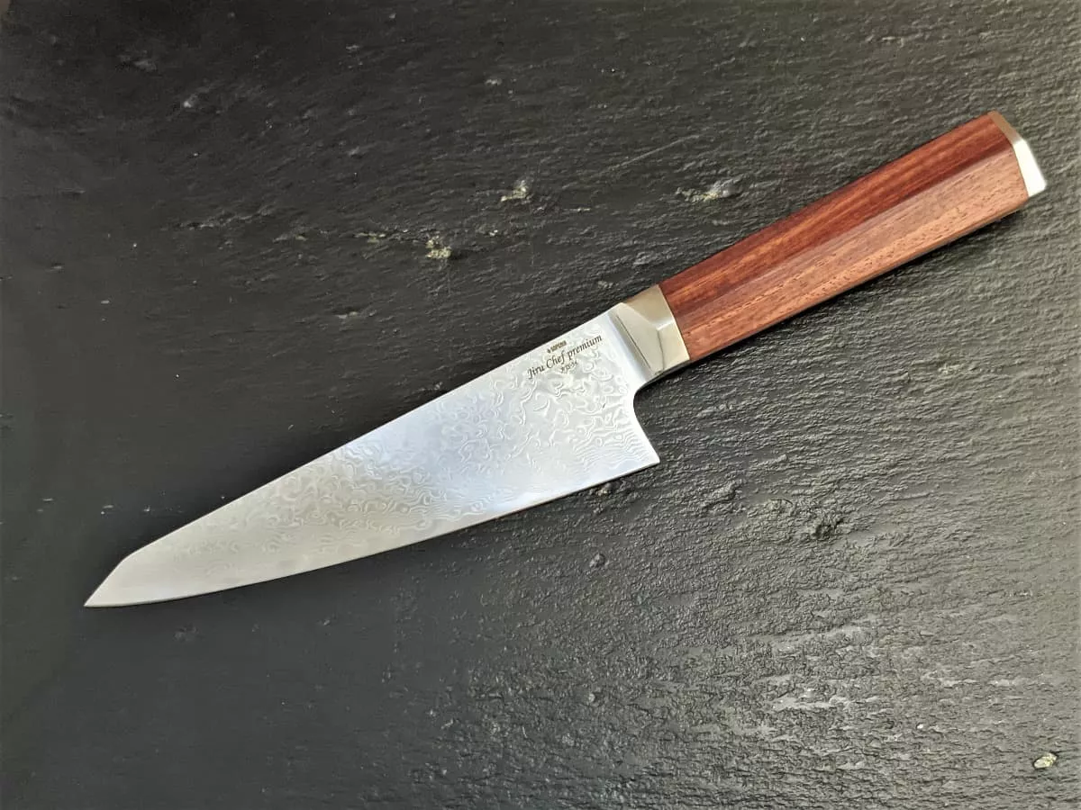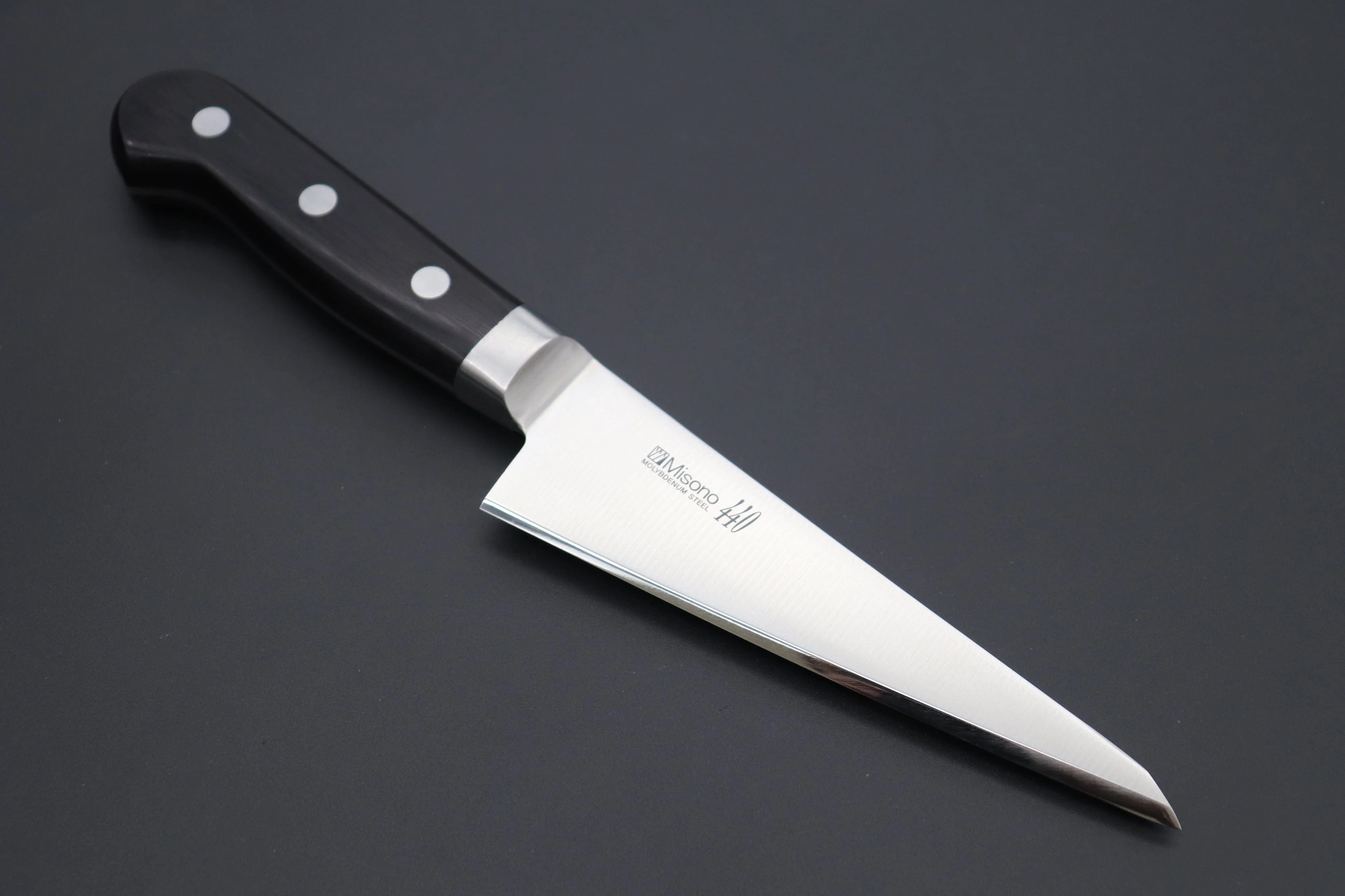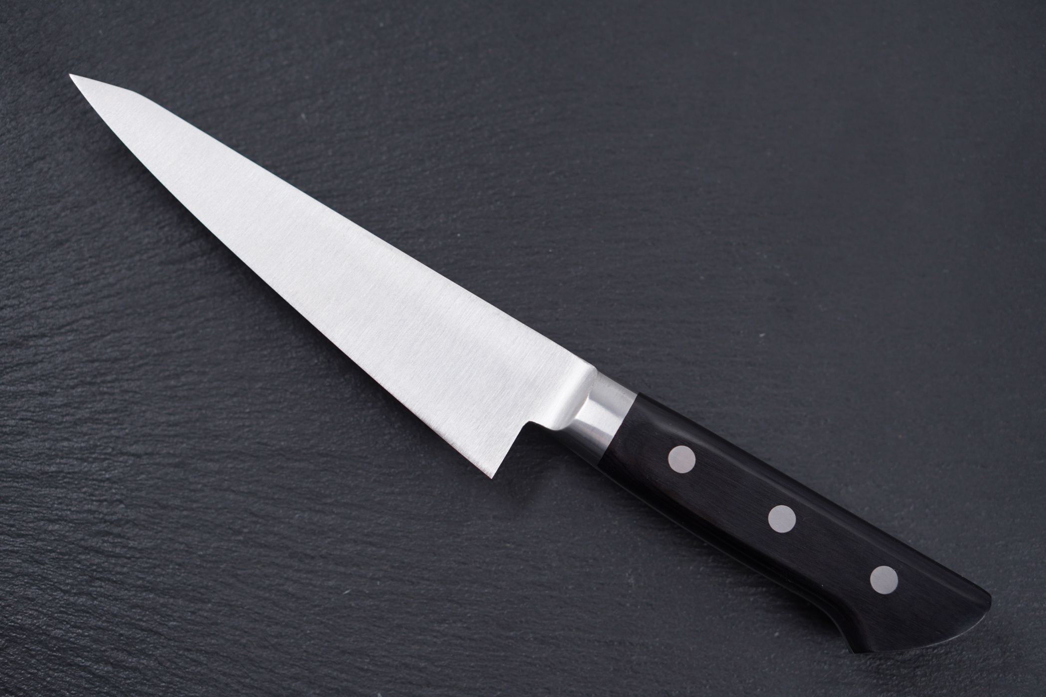 Нож справа: - Использовался соевым хозяином пару раз в неделю за последний год с момента покупки. - Не точился, поскольку не успел особо затупиться. - Однажды был в походе выходного дня. - Порезал пару пачек тофу. - Вскрыл дюжину коробок и упаковок. - Был открыт и закрыт пару тысяч раз раз просто так в качестве фиджета.