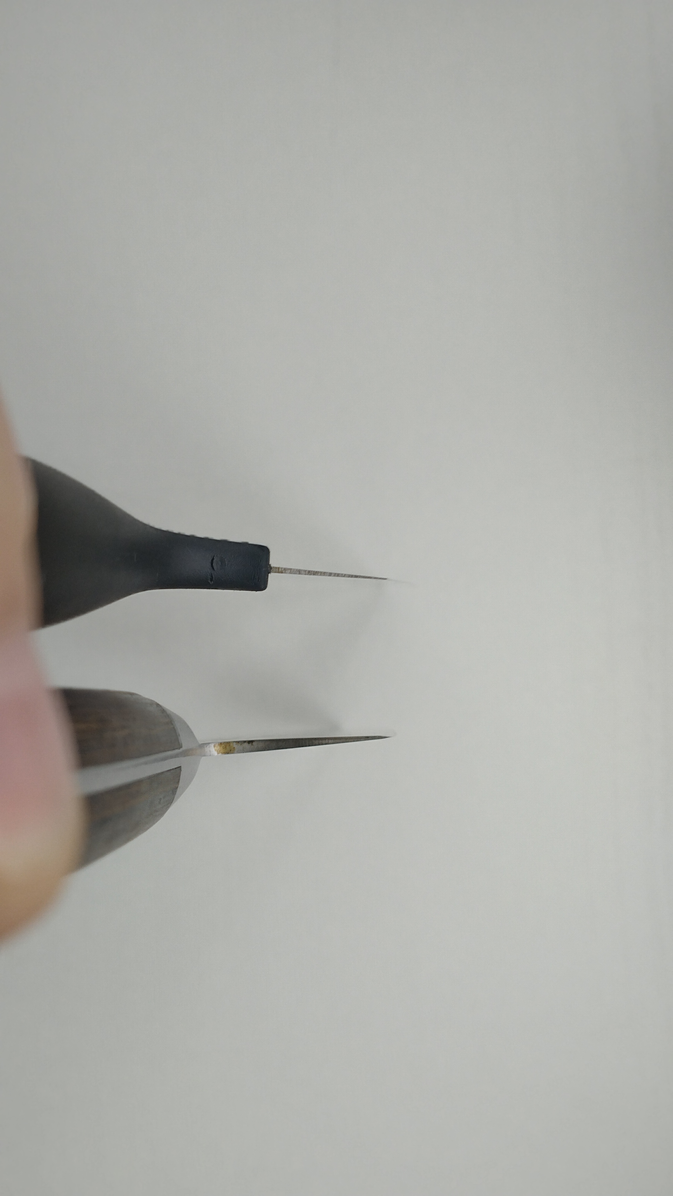 >>965582 Да ладно тебе, ничего страшного не случилось. Конечно немного неожиданно как выросла ширина подвода, но и угол малый. Ну сточил около 1 мм, ну и хрен с ним, нож и так б.у. Не факт что я не удержался бы и не сточил, хотя я тоже понял что есть этот скол и есть. За 2к это и так хорошая покупка и состояние отличное. По итогу если этот сантоку оставлю себе, то скорей всего я все равно пересведу его под линзу с микроподводом это же не полочник , а кухонник для работы. А если не оставлю то продам, а там уже не важно.