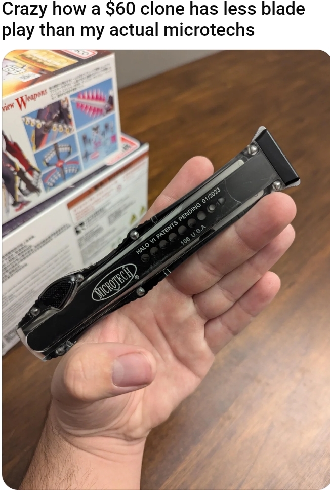 >>967004 В завершение, сравнение с старой версией от Hifinder Так же, держал в руках оригинальный комбатский трудон 3 поколения от микрокека который есть у тикток-чела из лесодома и по отличиям могу сказать только одно: у оригинала совсем незначительно мягче механика. В остальном же - то же самое. Бонусом закину детальное фото серрейтора.