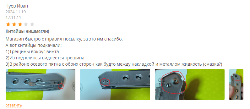 Кстати, передаю привет местному фанату ok knives. Ты тут периодически жопу рвал, мол топ фирма да за такие деньги, багауты с вг10 за 15 баксов, ну вот теперь понятно почему. Покупателю китайской кухни выше тоже машу ручкой.
