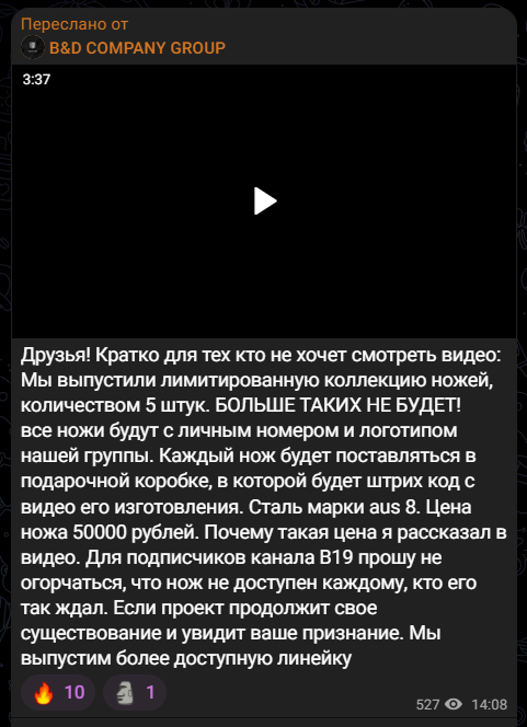 >>967071 >Странно, что сейчас никто не делает подобного Себестоимость таких ножей, если их на воле делать, примерно можешь почувствовать? Упомянутый тобой Леня штампует по 100 ножей в месяц и продает в среднем по 50к за штуку. А тут на один нож месяц наверное уходит.