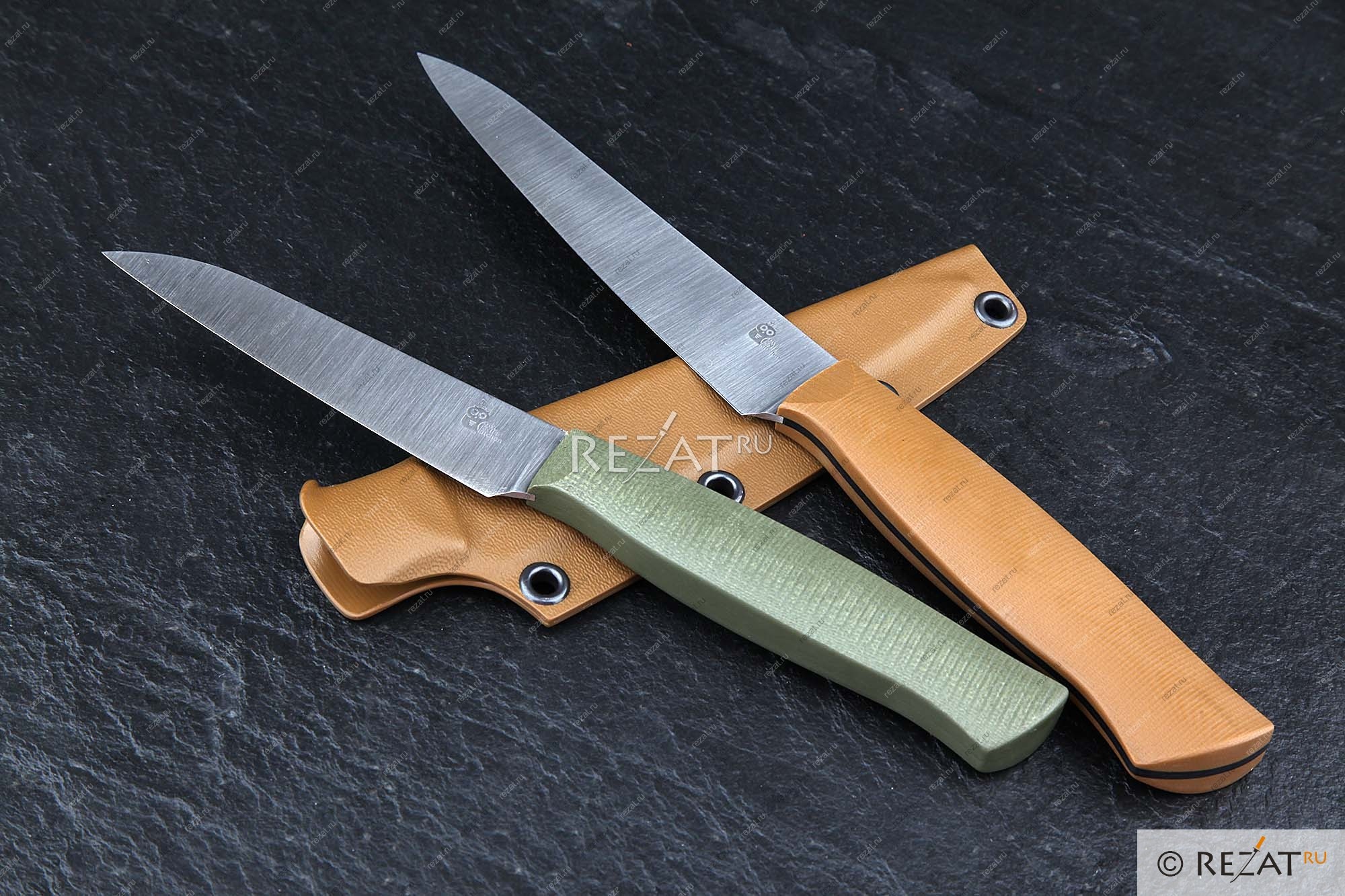 Есть ножи с тонким лезвием, сведением в ноль и формой примерно как на опинелях или копытце (пик рилейтед), но только с фиксированной ручкой? Сталь да хоть тот же сандвик, нержа (будет мочиться, в т.ч. соленоватой воде), но чтобы с хорошей закалкой, хотя бы 59-61, длина 10-13 см.