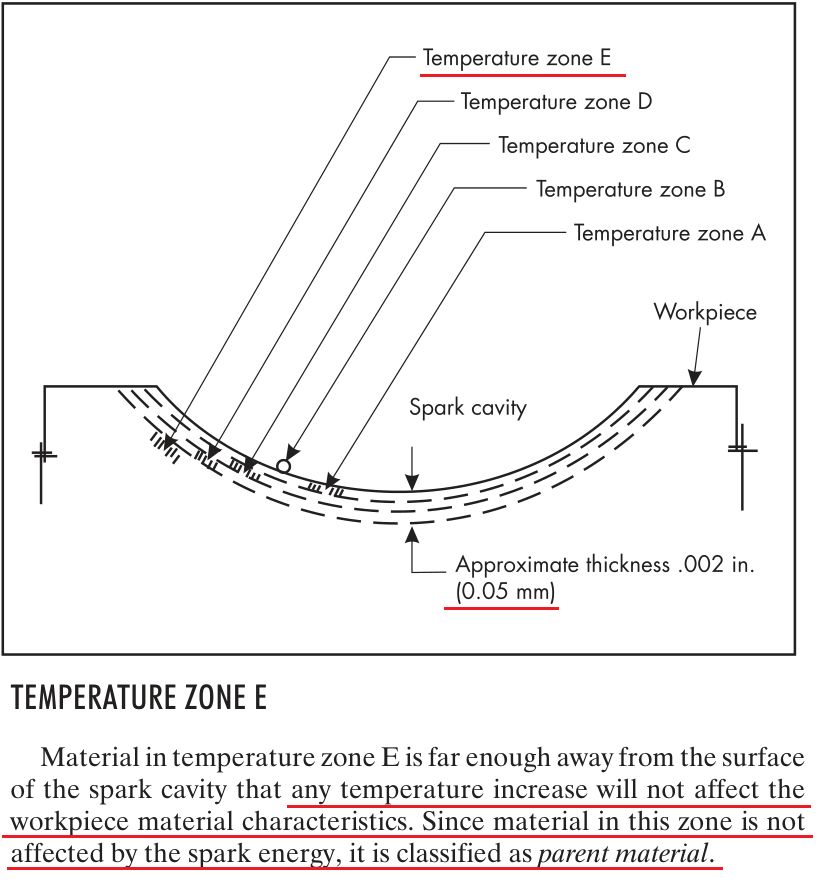 >>967456 > термичка ухудшается При обычных режимах электроэрозии материал затрагивается максимум на глубину 50 микрон, уже на этой глубине свойства обрабатываемой детали не меняются. При заточке инструмента больше металла снять придется. Пикрил с цитатой из: Jameson, Elman C - Electrical discharge machining > приличные ножеделы вообще отказываются в пользу гидроабразивной, тебе не рассказали? Гидрорезка работает быстрее. Что сказать-то хотел?