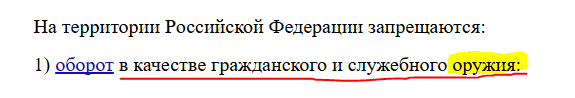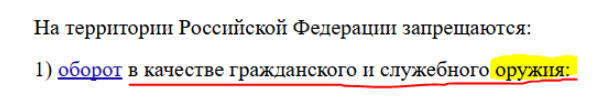 >97мм это более 90мм Дааа, и поэтому комбат трудон запрещен к обороту, идиот. И зачем ты мне высрал пик 2? Типа про гражданское и служебное ОРУЖИЕ говорится? По твоей недоношенной логике если тут речь про ОРУЖИЕ, и есть пункт про автомат и <90мм, то его нельза в качествое ОРУЖИЯ, а просто на карман можно? Я верно тебя понял, мудофел?