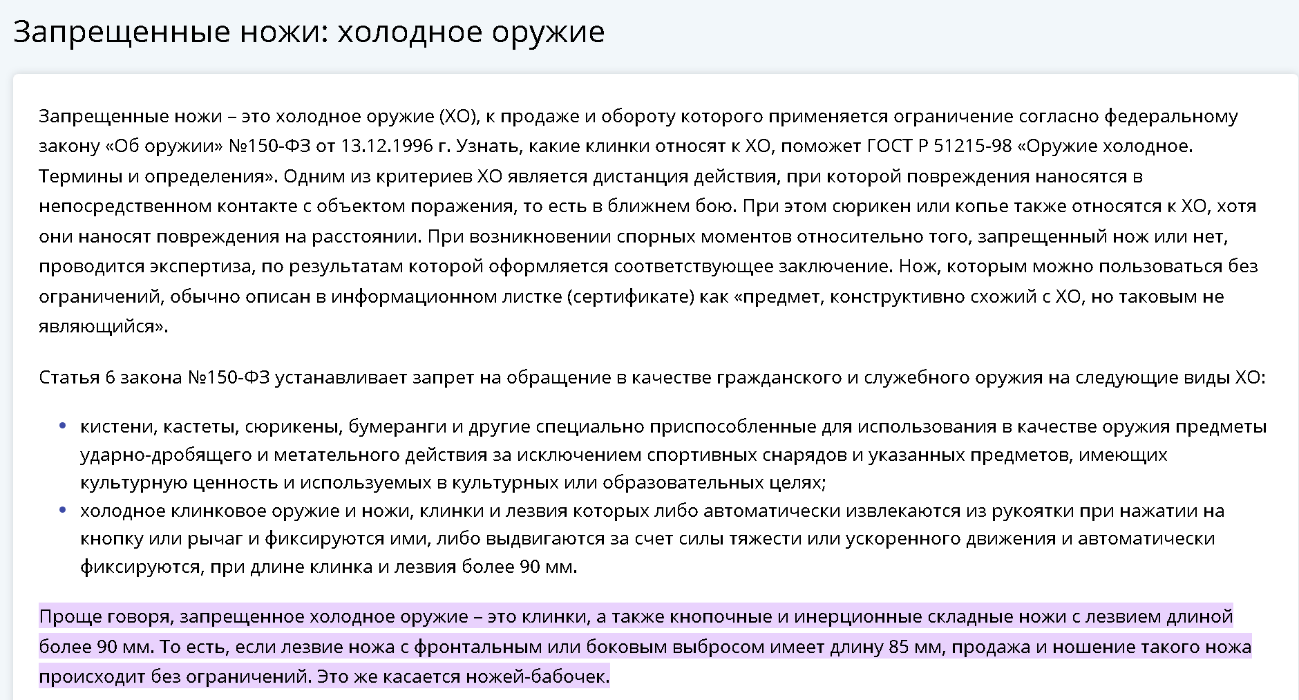 >>967634 Сходи в школу, попроси чтобы тебя научили читать. Блять, а как ты это прочтешь, если не умеешь читать? >>967669 97мм это более 90мм >>967675 Тут на скрине >>967617 про обоюдоострость ничего не написано. https://www.consultant.ru/document/cons_doc_LAW_12679/d542c9b621f4c3b3add21c37bd569cd489aea5e8/ Нужен юрист в тред пyкнyтoго не звать, из него такой себе юрист По сути, речь идёт про изначально оружие. Является ли изначально оружием складной нож? - вопрос открытый. Оружие должно попадать под ГОСТ.