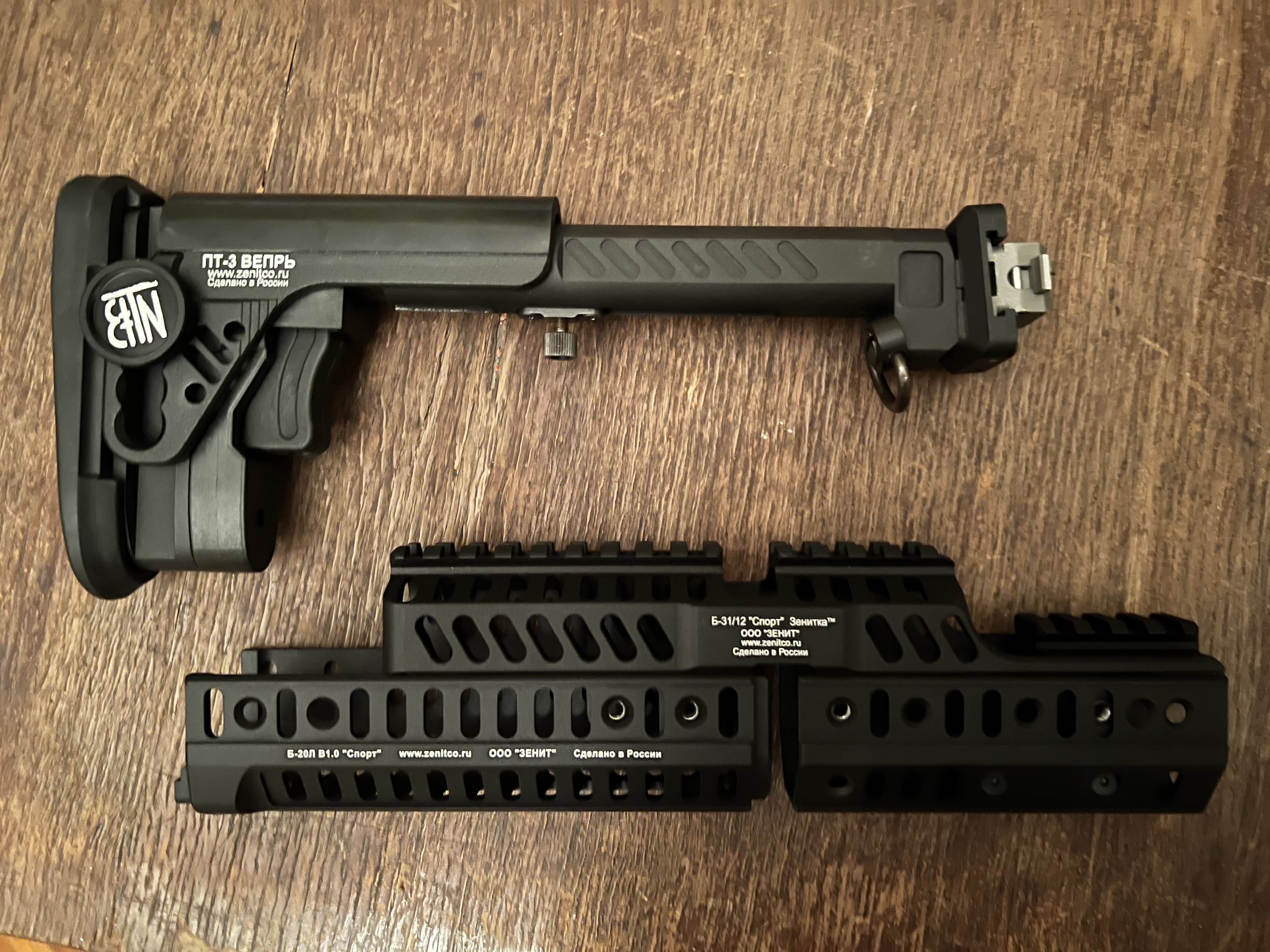 Как оказалось качество приклада оказалось хорошим, остальные крупные части тюнинга (цевье, рукоятка, фонарь с лцу) от зенитки тоже хорошего качества и легко установились. Есть пара проебов в мелочах типа тромикса (слишком короткие винты) и чуть более узкий размер (пришлось подпилить немного крепление на антабке) проприетарного интерфейса на передней части длинного цевья.