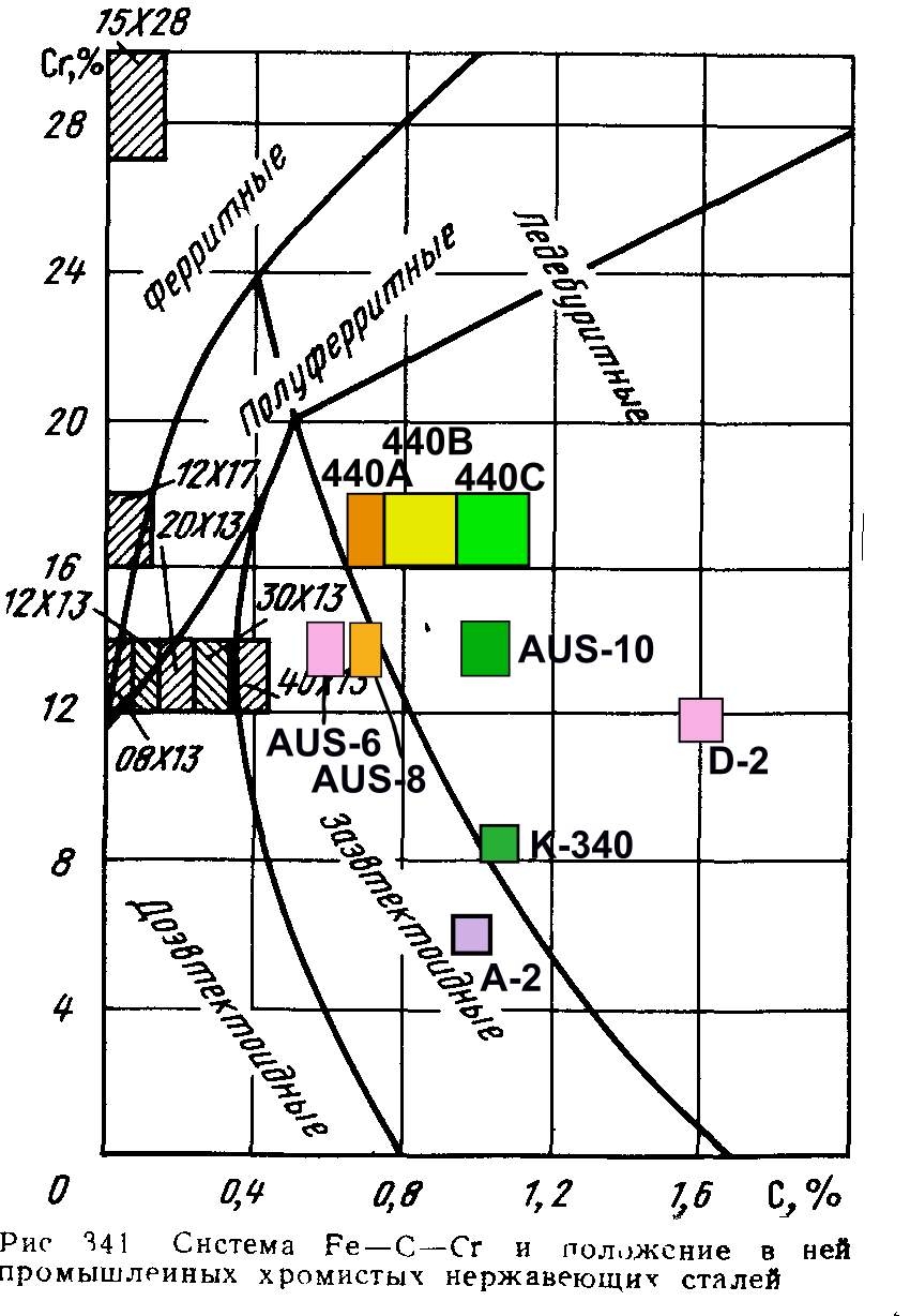 >>988352 >Из англоязычных источников, если я правильно понял, они делят на hypoeutectoid, eutectoid и hypereutectoid, то есть, 8хромов это ~ eutectoid, 1.4116 - hypoeutectoid, а 440C - hypereutectoid. Не думаю. Скорей всего ты что то не понял. Скорей всего ты пытаешься диаграмму систему Fe-C, на которых это часто объясняются основы, применить к другим системам, как пример Fe-Cr-C, там все по другому. Я же специально диаграмму прикладываю. Например, сталь с 0.5% углерода без легированная, будет доэвтектоидной, но добавь в нее 12% Сr, она санет заэвтектоидной. Короче изучай базу, что бы не быть кеком.