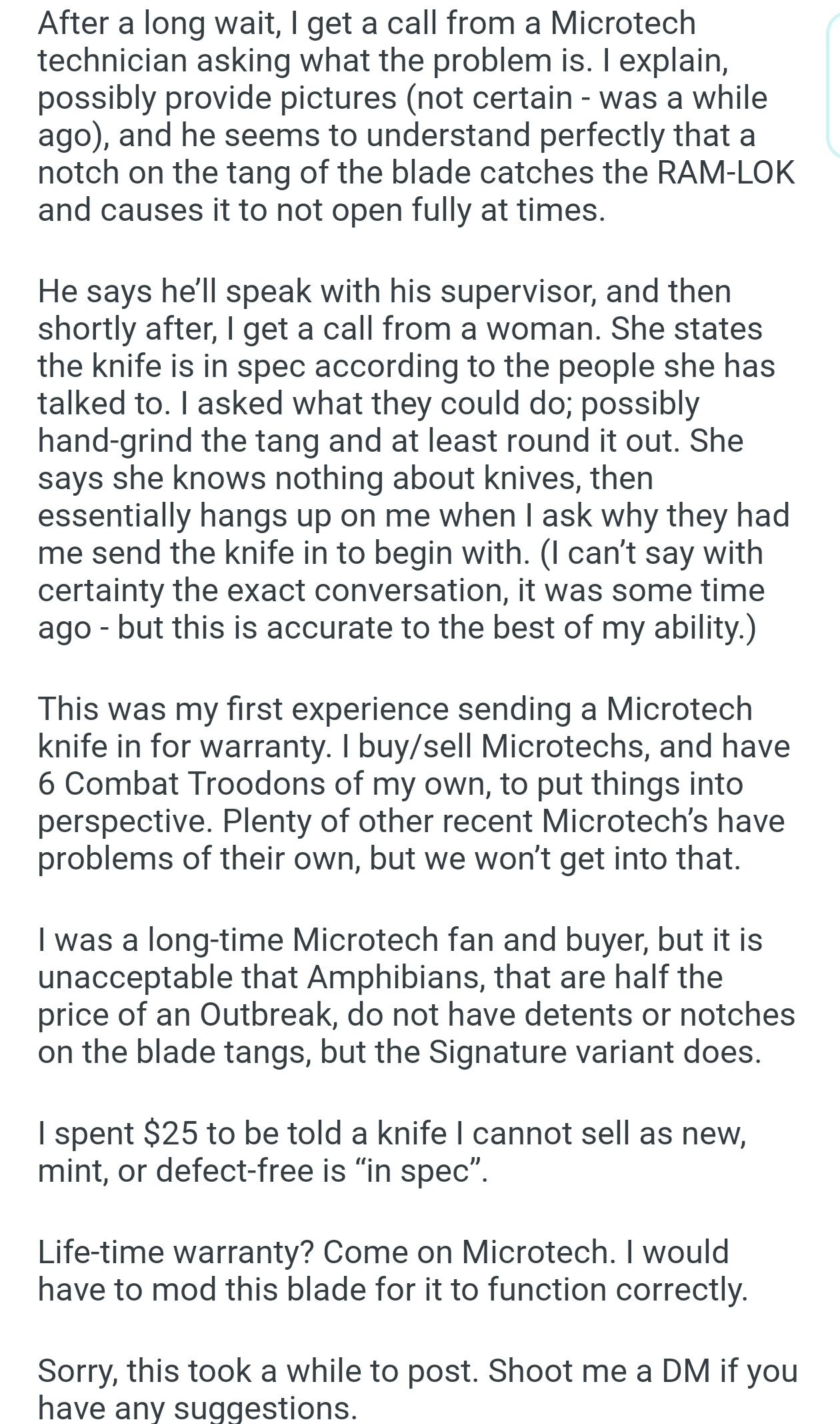 >>988721 Так там суть в том, ято он нож с явным дефектом отправил за свои деньги на гарантийное обслуживание, а ему тупая пизда мананер говорит что нож осмотрели и он в порядке.