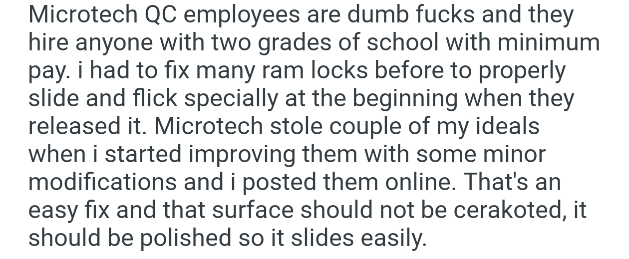>>986712 > Microtech Алюминиевая механика, говенная подгонка, оверпрайс, непонятная краска вместо анодирования > , у него стеклобой есть. У 95% ножей он есть.