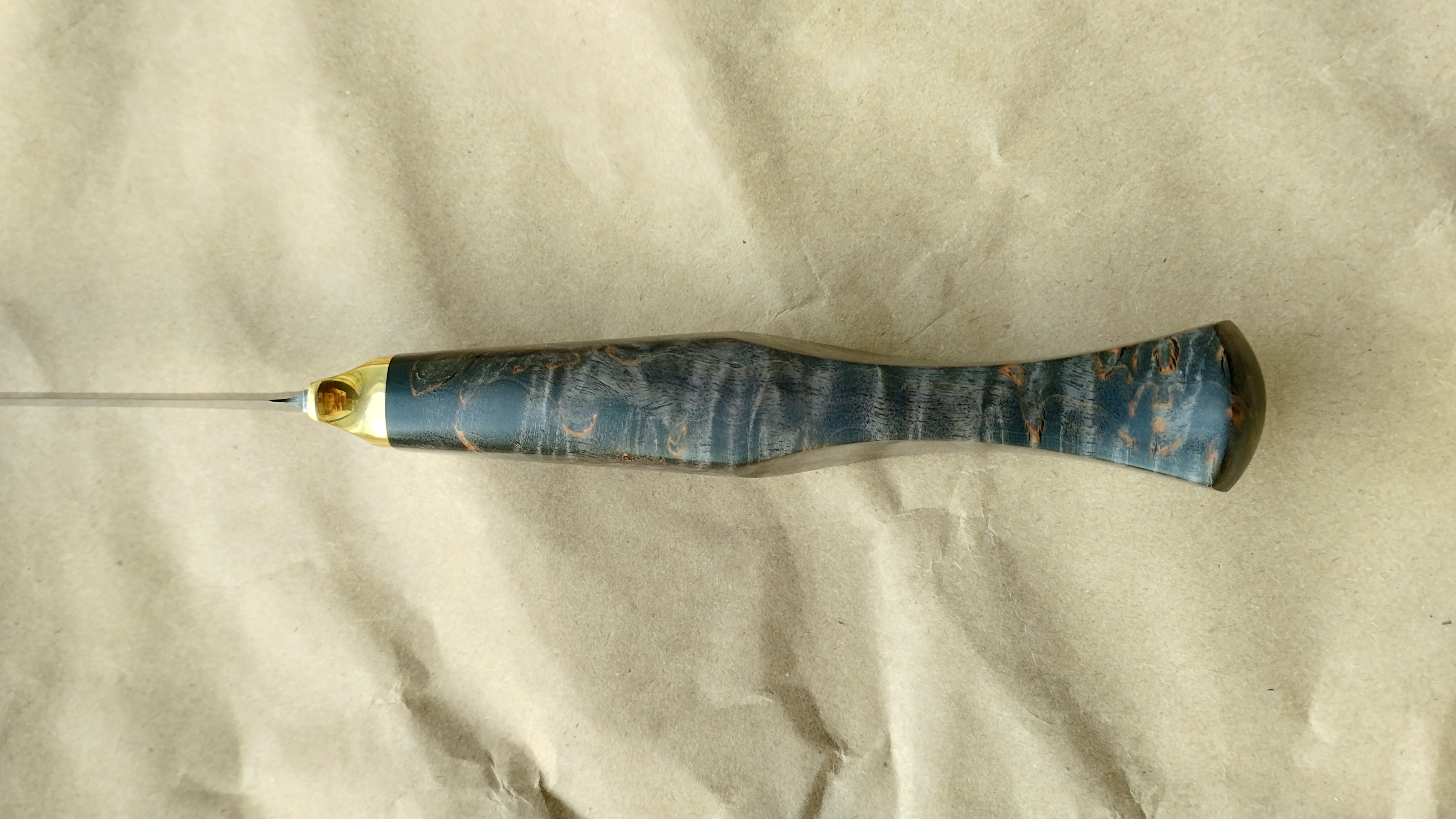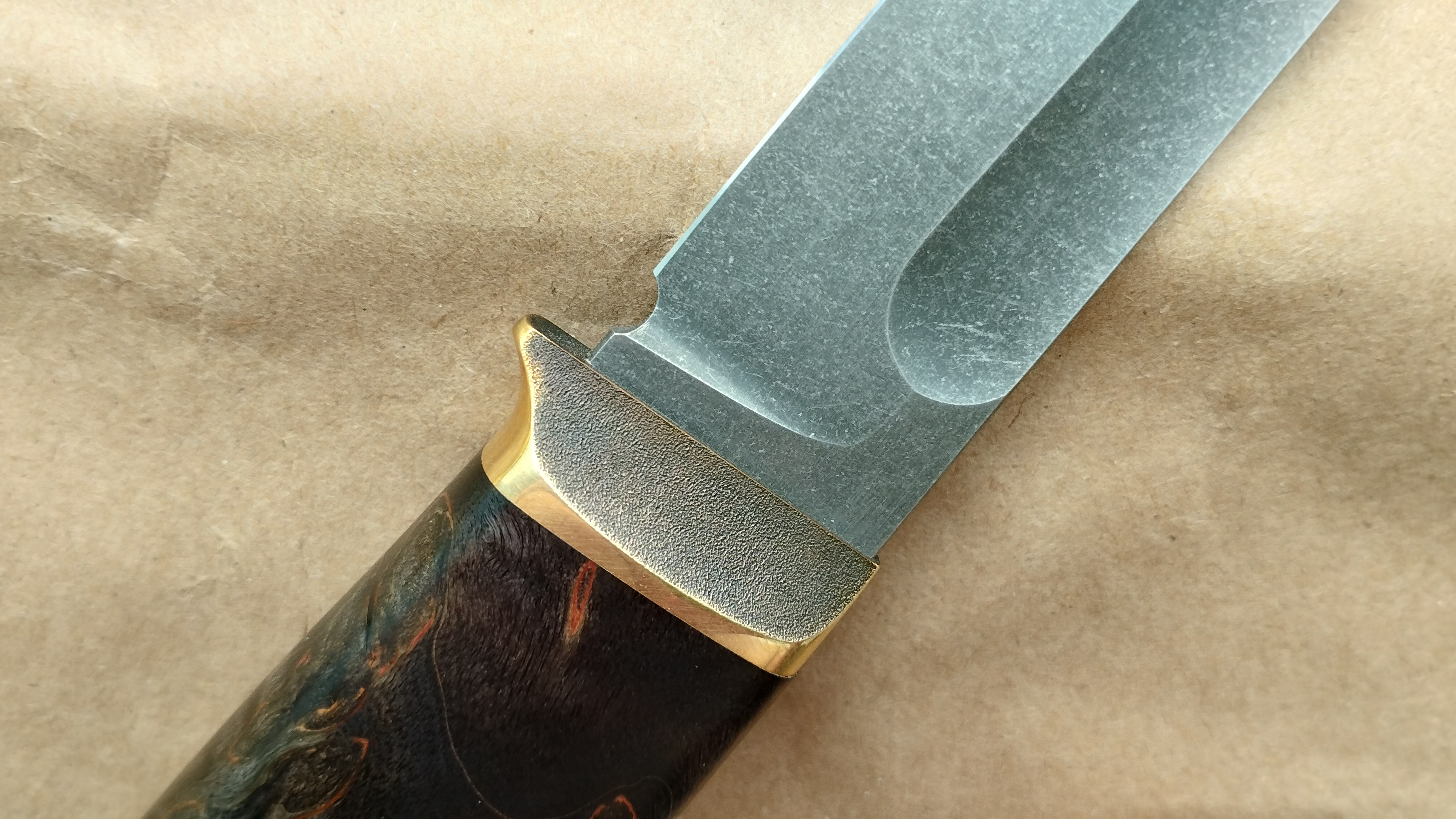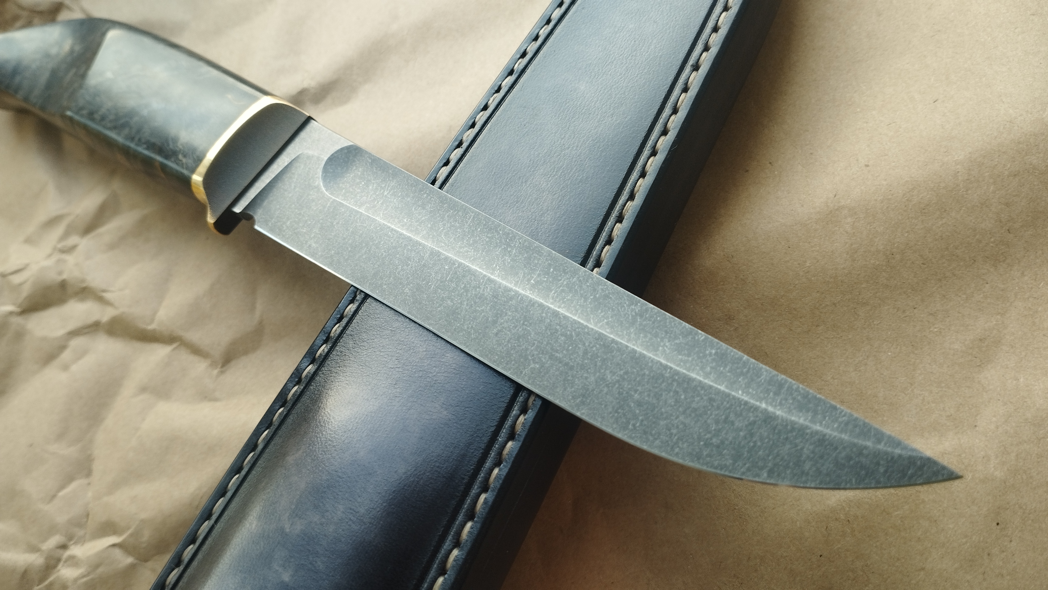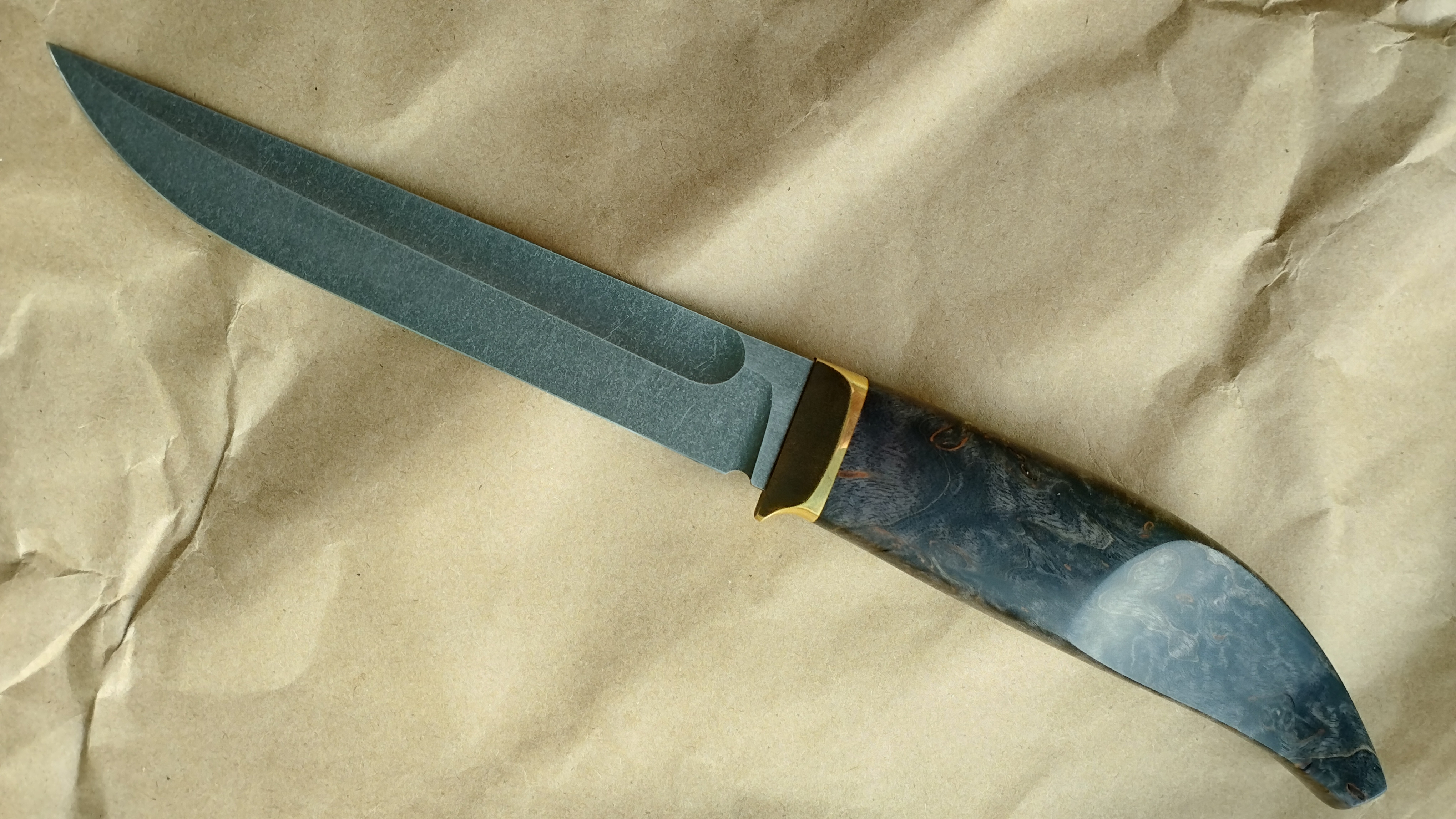 И вот ещё: сталь 9хф мгновенно ржавеет в коричневое или типа японских ржавеек потихоньку покрывается патиной? >Химический состав стали 9ХФ установлен так, чтобы сохранились преимущества углеродистых сталей и уменьшились их недостатки. Низкая прокаливаемость и чувствительность к перегреву. Для этого сталь легируют небольшим количеством марганца, хрома и ванадия >Благодаря лучшей прокаливаемости сталь 9ХФ выдает более высокую, а главное более однородную твердость в тонких сечениях и более мелкое зерно. >Бланк имеет зонную закалку на масло. В районе лезвия термообработан на твердость 62-64HRC, в районе обуха 40-50 HRC. Заготовка имеет два низких отпуска. Высокая твердость обеспечивает хорошую износостойкость при достаточной пластичности режущей кромки. Если вам необходима увеличенная вязкость клинка-положите бланк в духовку на 220 градусов или выше на 2 часа.