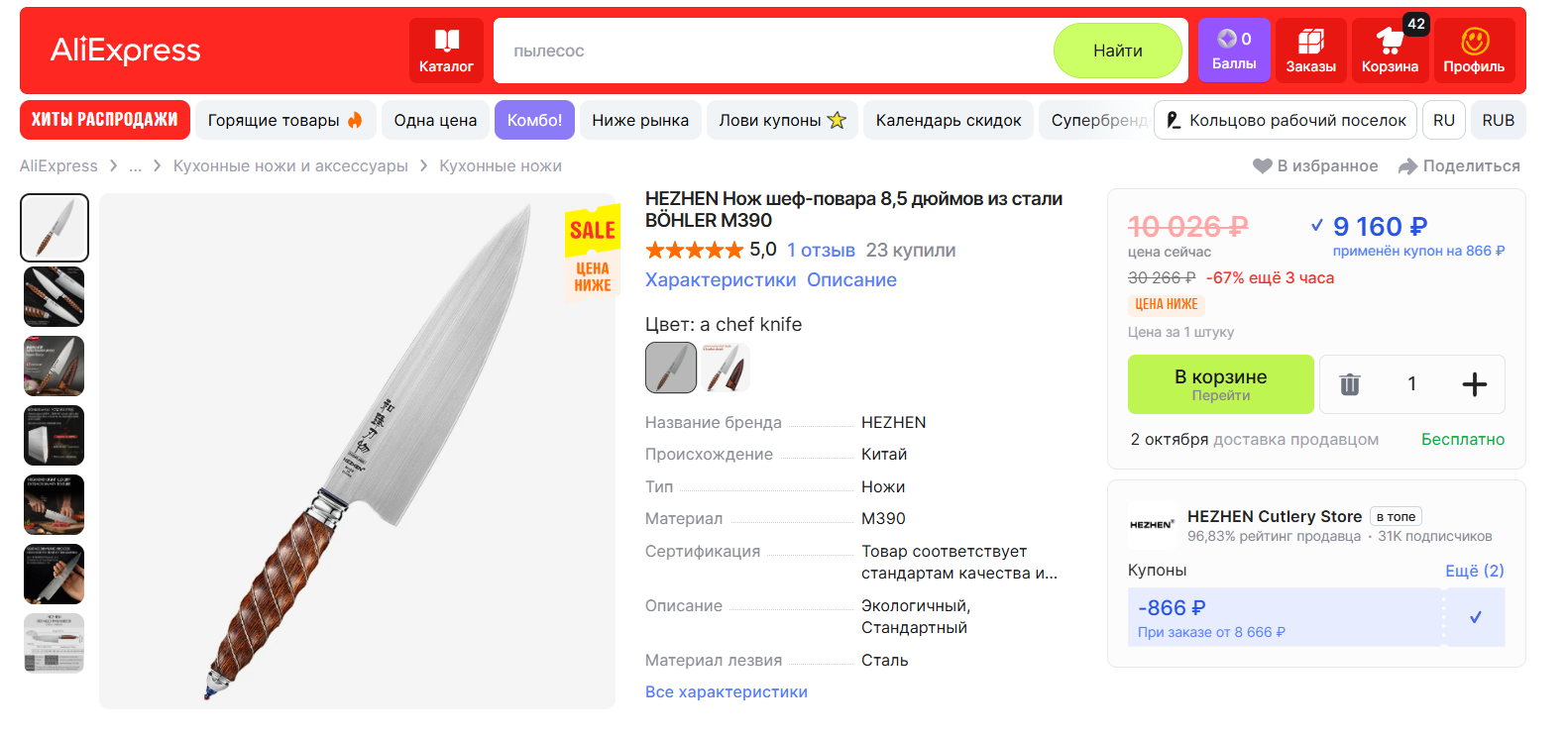 По совету проверенных камрадов местных поварят тоже взял себе кринж-порошок от дяди ляо под брендом грандшарп. Вот только вместо него хуй знает что приехало. На али писали с35вн ну понятно, что китайский аналог и твердость 61-62, а на ноже который приехал ноль упоминаний стали и твердость 60+-2. В принципе за 2.5 тысячи рублей норм, но надо понимать, что приезжает красно-черный цыганский китч с дамаском и сам нож оказался довольно увесистым, чего не ожидал.