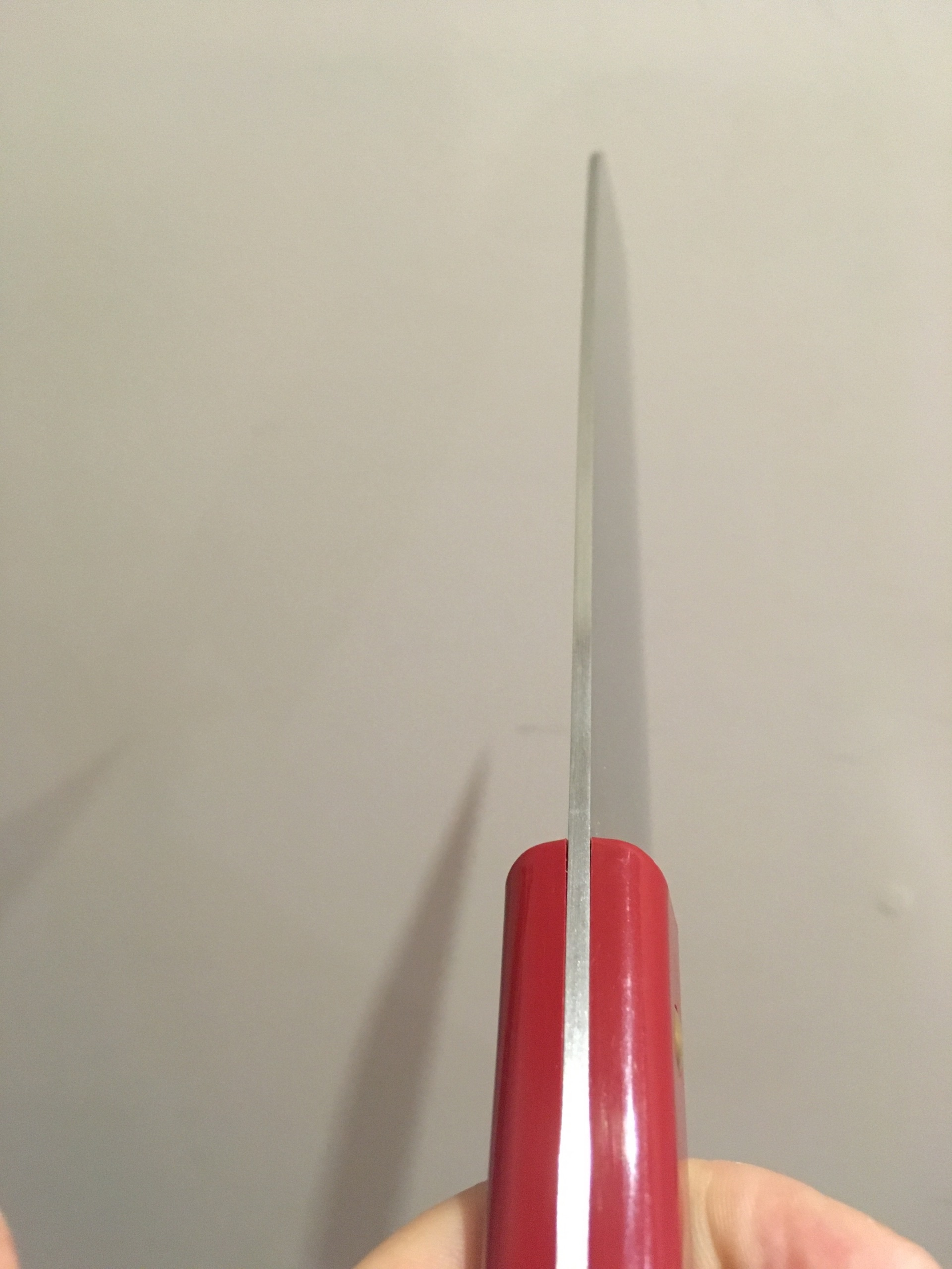 >>993169 Приехал. В принципе неплохо за 2300 руб. Коробочка и упаковка отличная, бумага со всякими нитками разноцветными. Презентационная часть очень хорошая. Сделан нож хорошо. Зазора между рукоятью и клинком нет, дерево и рог блестит, все красиво. Угол наклона спусков общий 5.5 град, сведение 0.2-0.25 мм. Обух скругленный, темное покрытие типа краски, возможно. По сравнению с икеивским весит заметно больше 250 г против 160 г. Не понравилось "острие". Думал клинок в профиль будет более квадратным, а там эта дурацкое устройство как у накири и угол больше 90 град, не понимаю зачем так делать (что бы не уколоться ?), посмотрю будет ли этим удобно например лук резать перед шинковкой. Рукоять какая то излише длинная и непривычная, но лучше так, чем короткая.
