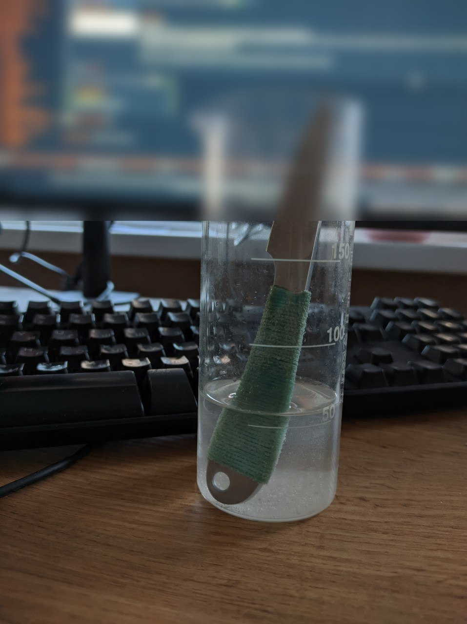 Сталь была выбрана 90х18мф, поржаветь я её не смог - стоял нож больше недели в крутом растворе океанической соли, до полного высыхания, и как видно по фото - не поржавел.