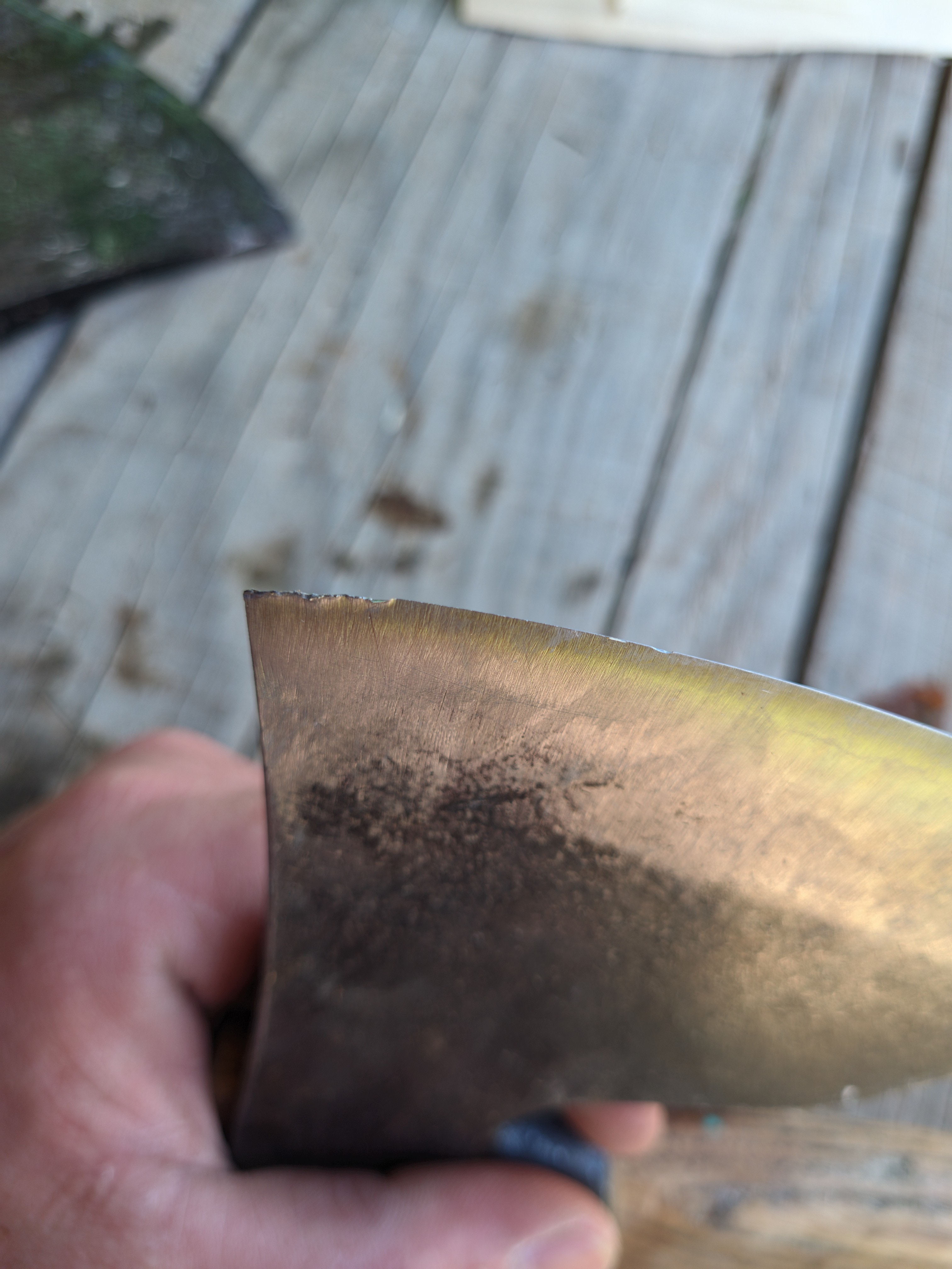 Два года назад купил малый топорик у "Аники", ветки там обрубить, доску подтесать, ну в деревню карочь. Оче годный топор. Топорище не рассохлось, рубит хорошо, красивый. Сегодня нечаянно влетел в другой топор, лул. Такой знаете дешевый, с пластиковым топорищем, очень мягкий. Слету не раскрошилось, есть замятие. С лёгким изменением геометрии переточил очень быстро. Годнота ящитаю.