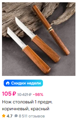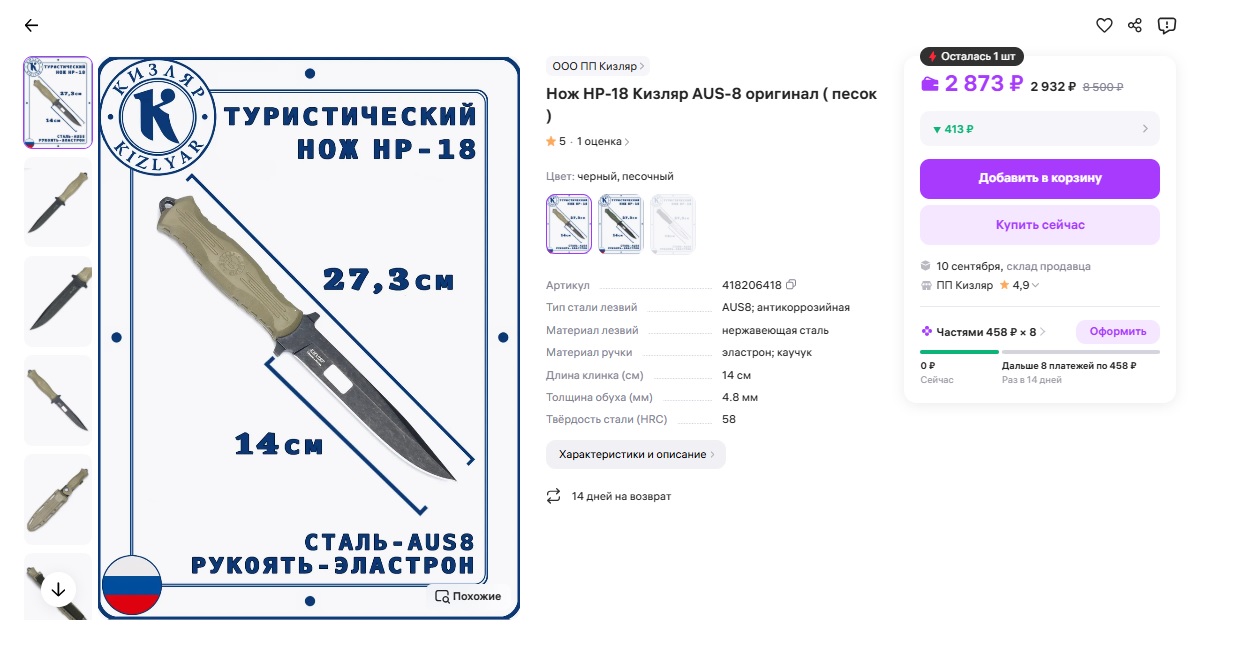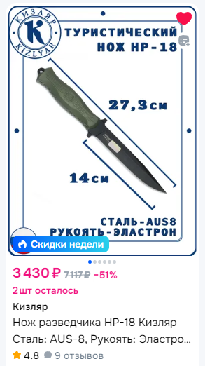 >>994568 > Нашёл на озоне пикрил реплику cold steel leatherneck Основной ножевой маркетплейс - вб, хотя и на озоне бывают некоторые эксклюзивы. Пикрил >Но разве холодняк на маркетплейсах так можно продавать? Температуру может определить только эксперт, а мы добросовестные покупатели и уповаем на то, что продавец не будет подставляться под уголовку и продавать кому попало холодняк Короче, бери, пока дают. Продажу телескопов на маретплейсах уже пофиксили