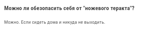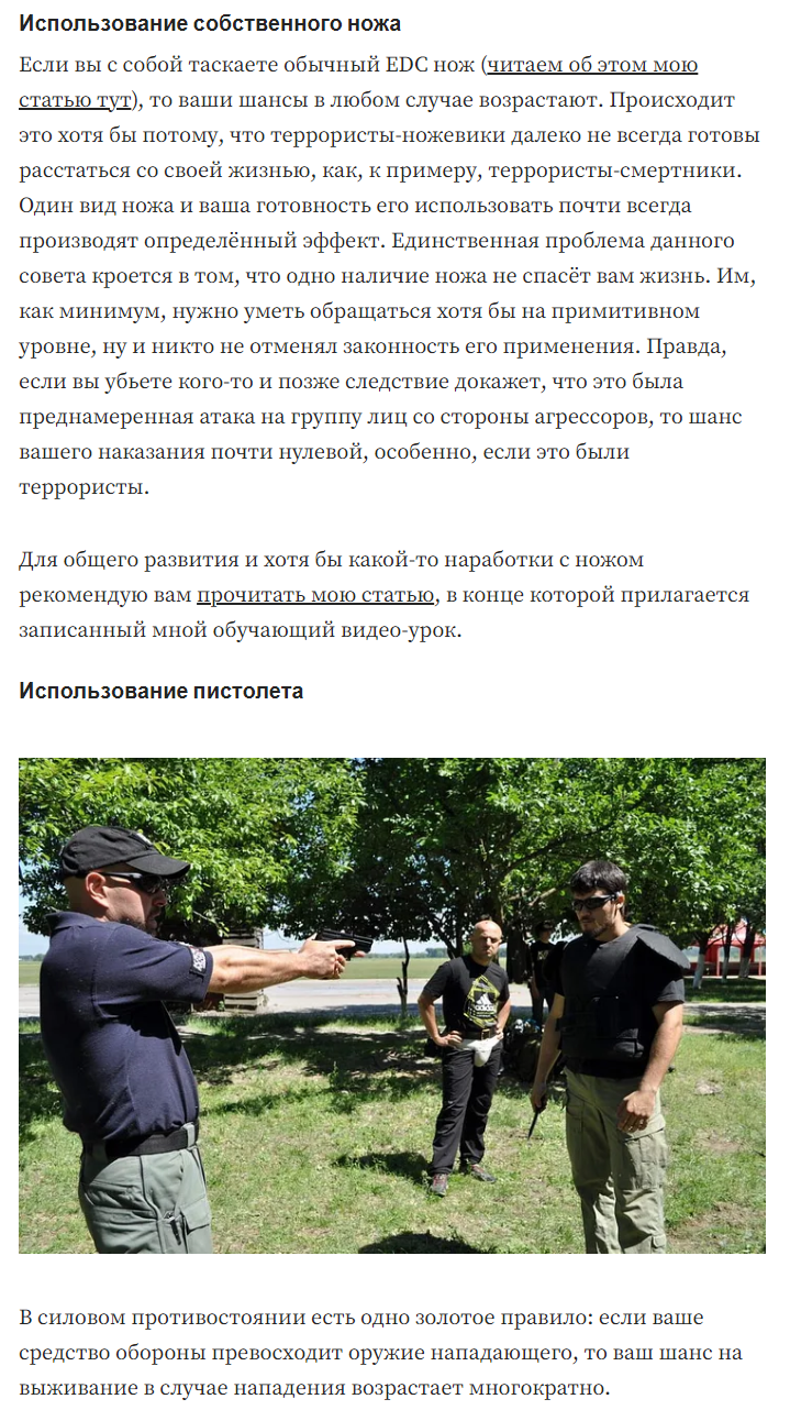 Теракты с ножом происходили потому что у людей рядом не было ножа. Вот вам плюс ещё один аргумент, ножедибилы. Интересно можно ли носить мачете в штанинах и использовать аргумент типа "защита от теракта" и "даже если меч понадобится один раз в жизни, носить его нужно всегда".