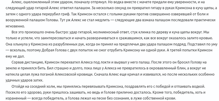>>996991 Кизляр, блять, Кизляр. Что, лохи компьютерные, теперь понимаете разницу при экономии на инструментах, ащь? Был бы нормальный небомжовский боевой мессер, чтобы длина, остриё, заточка, всё как положено, зажмурил бы обоих по быстряку и ещё мабуть уйти бы успел. А так ни того ни другого не вышло.
