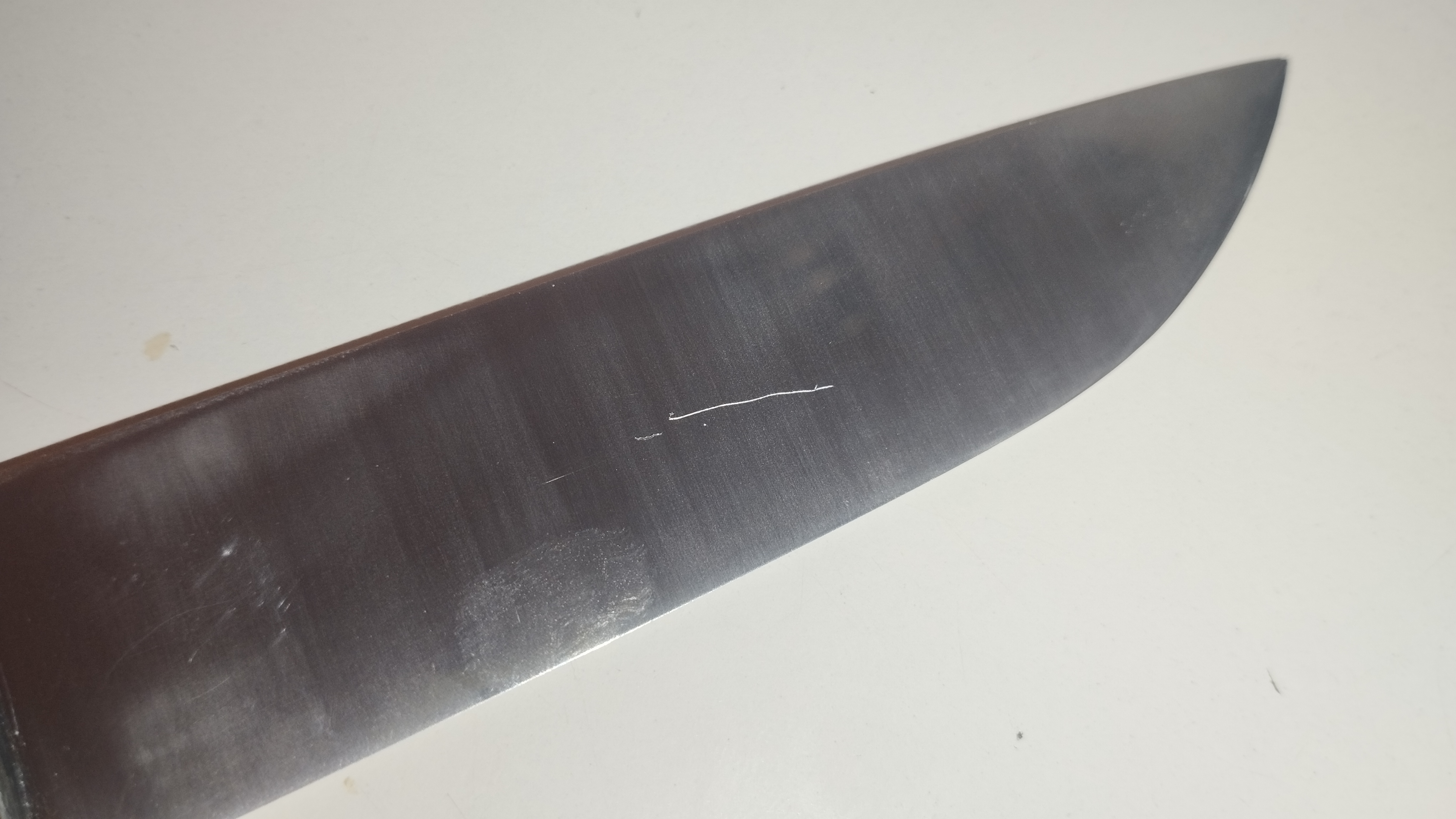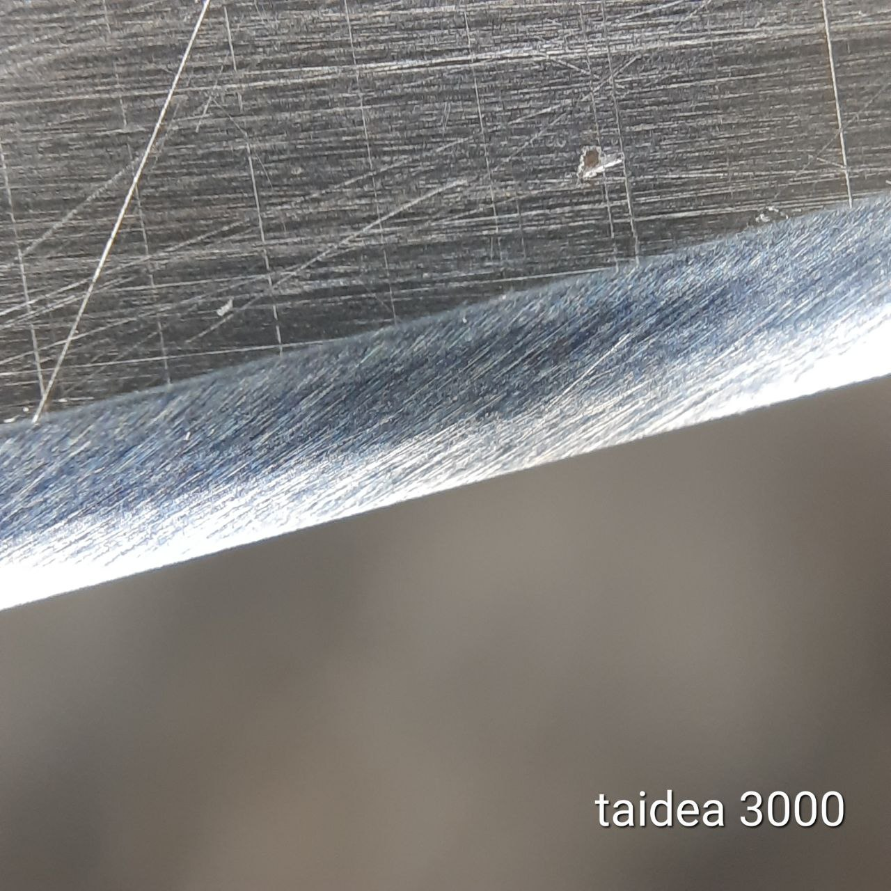 Купил попробовать китайские бруски Taidea Proyan 3000 TP2014 и 1000 TP2012 с новым процессом. Хорошо, годно. Электрокорунд белый WA в твёрдой связке, блок на стекле, геометрия рабочая искаропки без допиливания, загрязнений материала нет, высокая плотность, можно не замачивать, а поливать водой сверху и сразу работать, зерно стабильное по размеру, соответствует номиналу, хорошая эффективность съёма. Если сравнивать с японскими водными камнями из того же ОА WA, нанивской чосерой, то они... как будто даже не хуже, но это надо попользоваться несколько месяцев, чтобы наверняка утверждать, может там подводные камни, так сказать. Сравнивая с купленным давно бруском Taidea из ОА, скажу, что они сделали большой шаг вперёд. У старого камня разброс размера зерна, имеются небольшие контаминации, номинал не соответствует, вода проваливается как в решето. Предварительно, вся новая серия камней Taidea TP20XX - годные.
