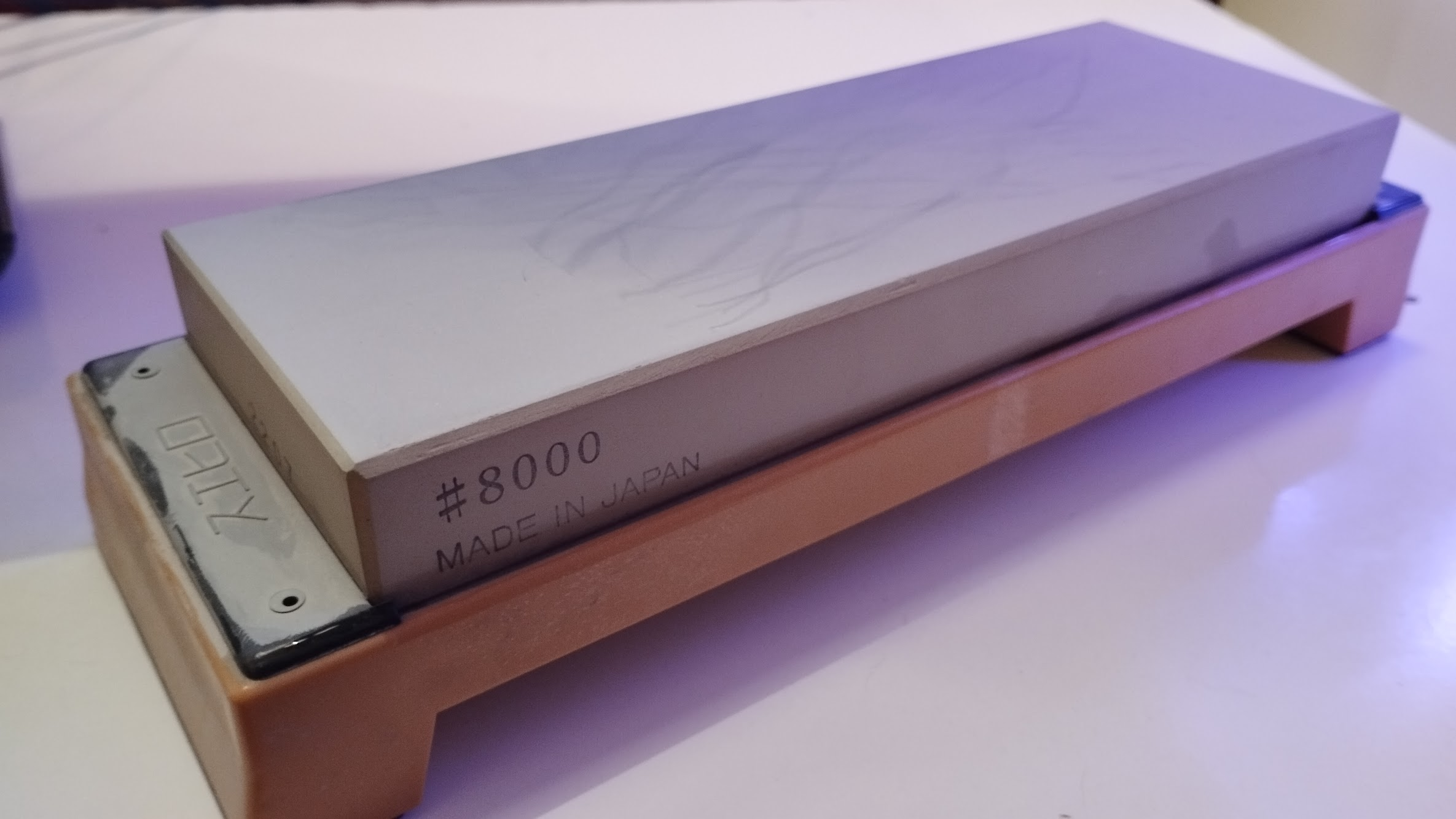 Но вот эта связка ебаная, я вообще без понятий что это. Она мягче чем керамика от япошек и в этом проблема, тактильно точится хуже, камень вырабатывается в разы быстрее. 600 совсем не але, если на наниве я на заусенец ЖИРНЫЙ вышел буквально за минуту, то на 600 по 5 минут на сторону ушло, и все равно вышло так себе. 3000 в принципе норм, дает уже зеркало, вроде не паразитит, но тоже такой же мягкий. Оба камня засаливаются за секунду, опять же из-за связки этой ебучей.