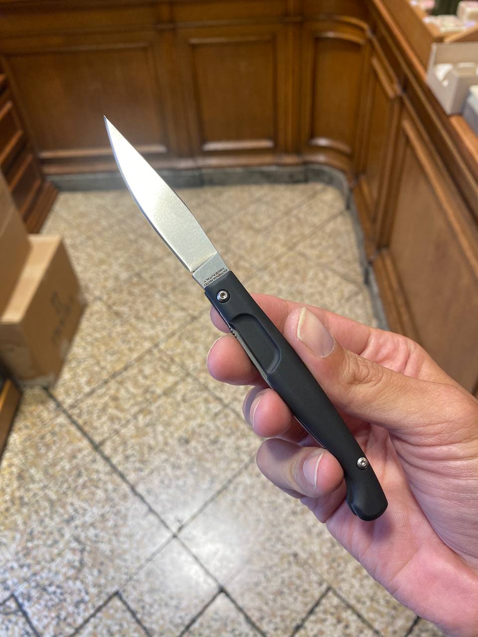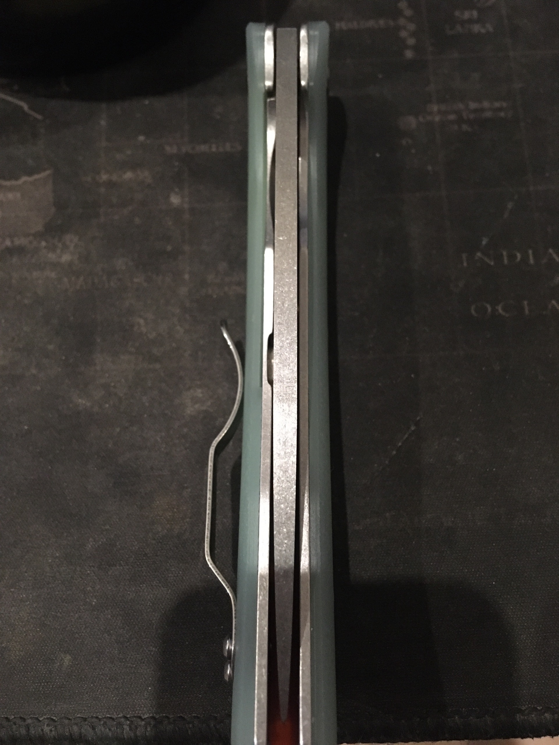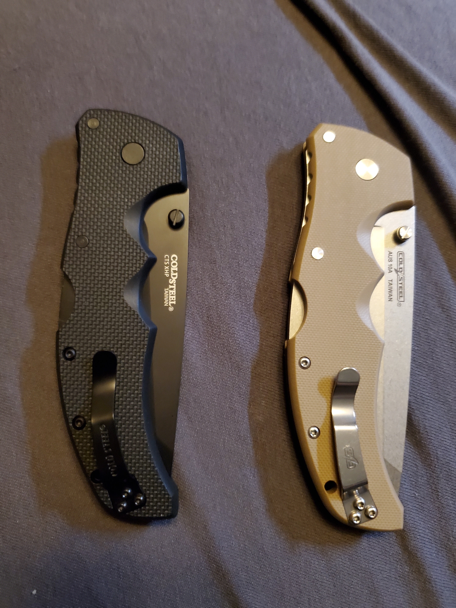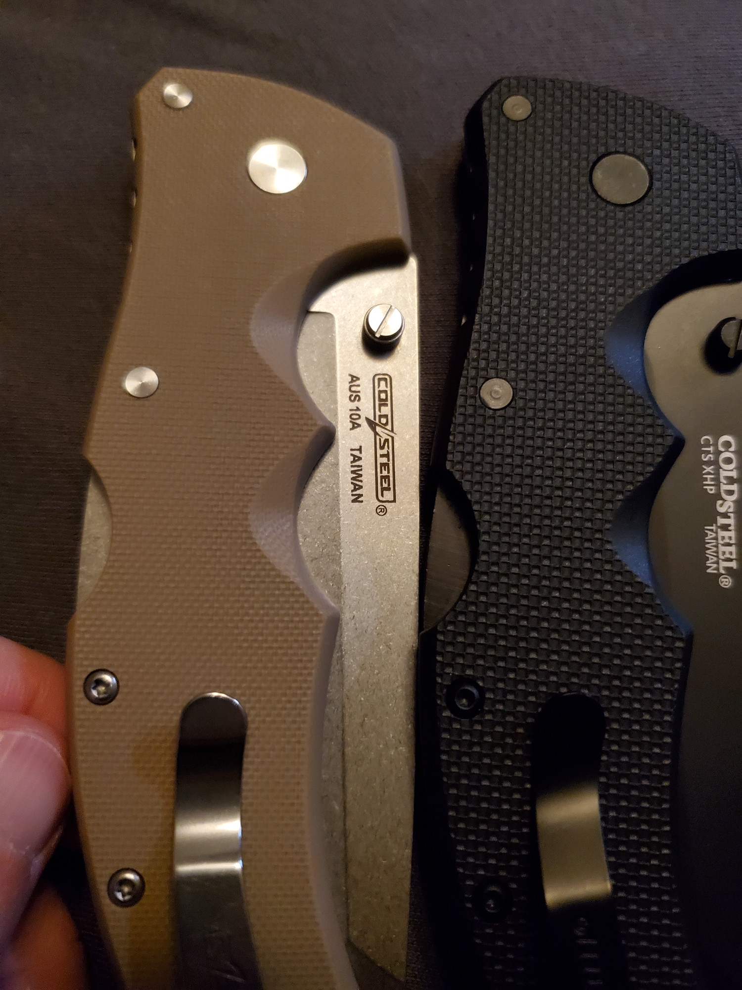 Пришел из Сан Антонио рекон в cts-xhp. В целом отношусь к модели нейтрально, с одной стороны охуенная эргономика рукояти, с другой - отвратительная механика из-за триадлока. Но увидев cts-xhp, который хуй найдешь, и цену в 65 баксов, возблагодарил жен продающих коллекции почивших мужей и купил. Резонно опасался что приедет паль. Особенности экземпляра: 1. На удивление гладкая g10, наощупь напоминающая пластик. 2. На удивление ровные, в меру тонкие, для колдстила подводы. Я хз, или повезло так, или паль, или бывший владелец переточил. 3. Коромысло триадлока с одной стороны сточено больше, чем с другой. Возможно это factory second? Люфтов нет. 4. Клипса это пиздец. Хуй отогнешь, лист бумаги пролезает с трудом. Наверное оригинал, лол.