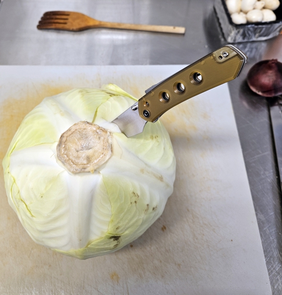 >>997022 > остановило отсутствие как такового упора Ну, там есть небольшая подпальцевая + плавник вэйва. В целом, всё как и у большинства складных ножей >А по материала то как, сталь? N690 на клинке, титан и микарта на рукояти. Но отковыривая скобы от степлера, я получил на нем микроповреждения РК. Но тут и пидорка из порошка о медную скобу заворачивалась, так что ничему не удивлюсь.