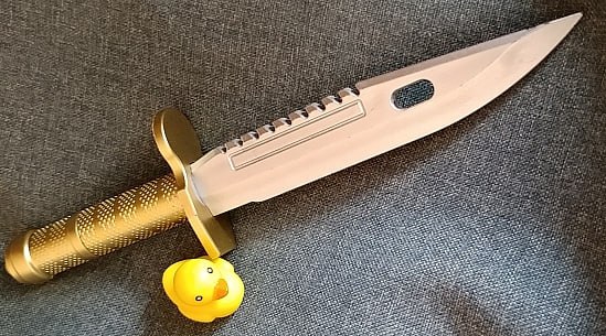 Получил эластичный тренировочный нож, заказывал пару, пришёл пока один, стоят в районе 200 за штуку. В принципе, годно, ожидал, что эластичные будут совсем как вялый писюн ощущаться в руке и придётся докупать пластиковые, но нет. Потыкал себя в рёбра, неприятно. Единственный минус - 80г веса, когда схожий нож весит уже ~290. Завидую нынешним зумерам в этом плане, уж слишком много ножевого фана им доступно за сущие копейки