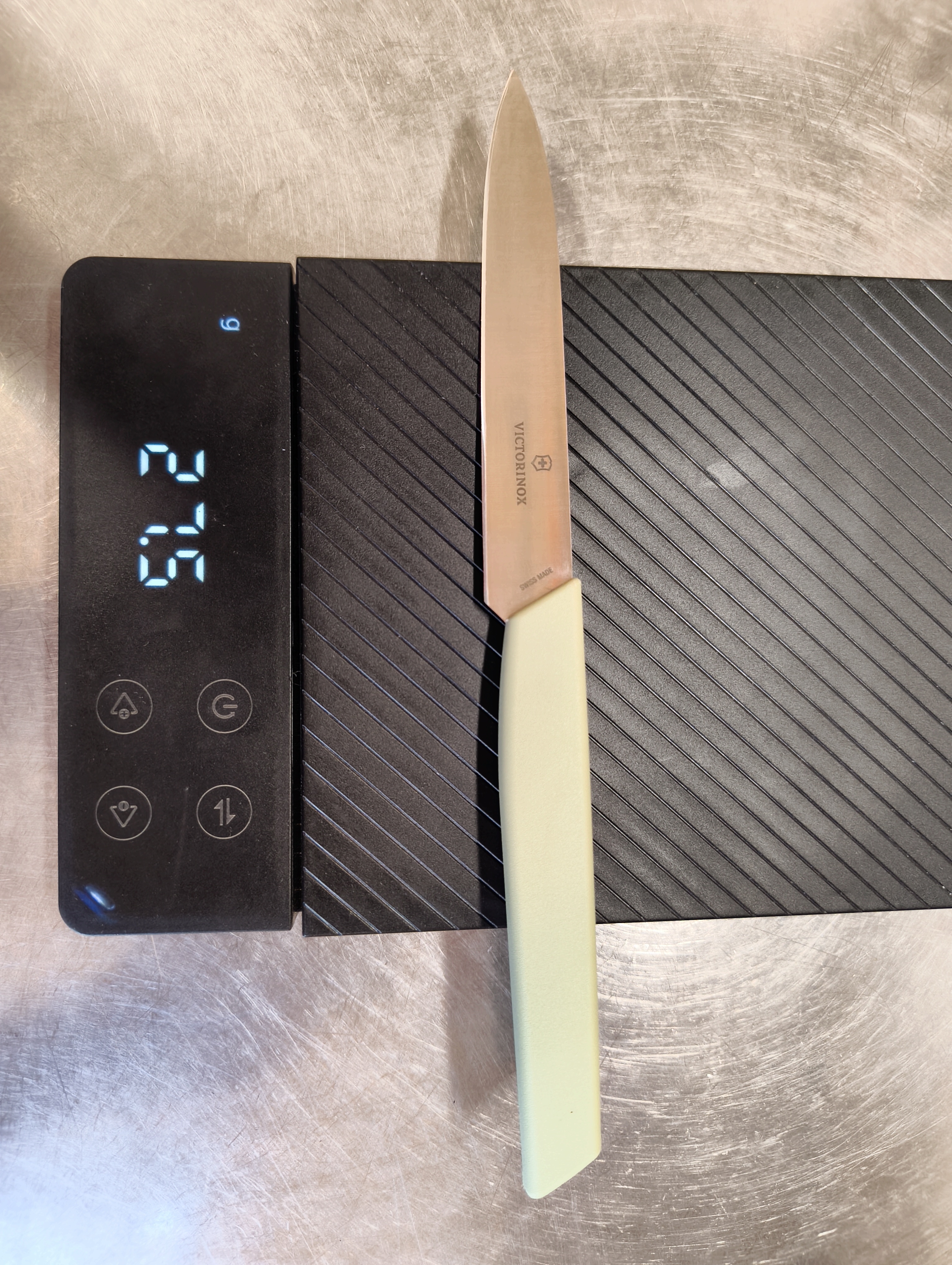 >>994348 Я бы тоже в 10 случаев из 10 выбрал второй нож. Первый нож — шеф Wusthof Classic IKON 20 из X50CrMoV15 в 57-58HRC, весит 270 г, ну такое, эргономика POM ручки на любителя и по хвату не универсальная, вес большой. Из достоинств — санитарный сертификат и условная возможность мыть в посудомойке. Второй нож — Ashi Hamono Ginga Stainless Gyuto 210 (может и версия из Shirogami#2 в 61-62HRC, по мелкой картинке трудно различить, но скорее всего на твоей пикче из нержи, углеродка блестит иначе). Сделан из моно AEB-L в 60HRC, весит чуть более 100 г и это просто отличный нож категории "если бы ты мог оставить только один шеф-нож".