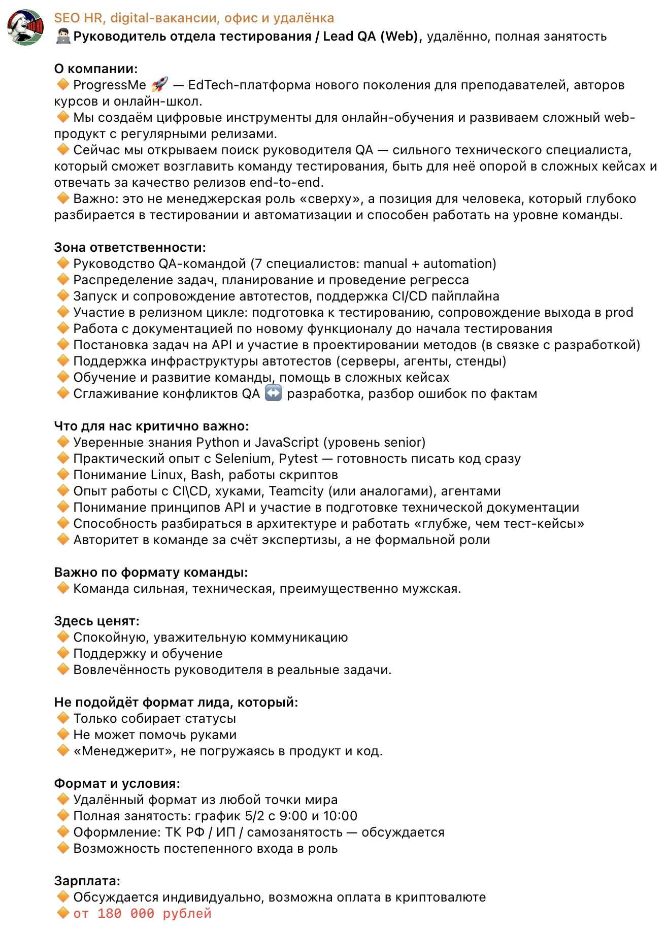 Принес вам поржать над зарплатами кодеромакак в 2026. Сеньор питон девелопер, работать руками и еще лидить 7 человек и все это за 180к в месяц. Довкатывались в айти через накрутку опыта, степашки))