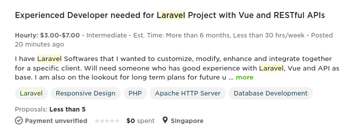 Насчёт стека - по-моему, странный выбор. Почему vue, а не реакт? Реакт-то попопулярнее будет. В целом, ничего не имею против Laravel, как фреймворк он хорош. Как средство заработка денег - не очень. Большинство работ на ларавеле это обычно супернизкобюджетные индусские заказы уровня $3-7 в час (смотри скриншот). Я рассматривал нишу ларавела, но опять же отказался по причине безденежья.