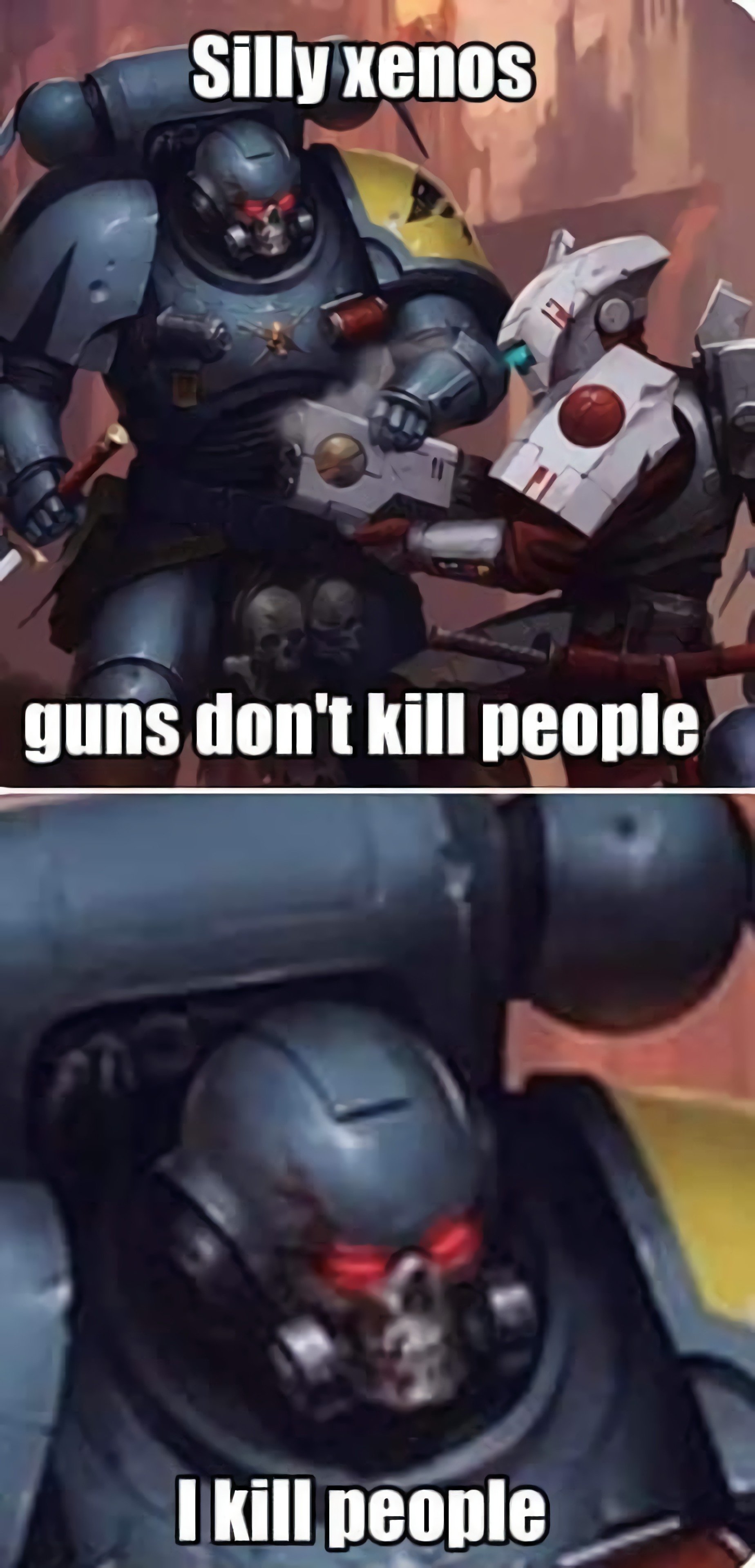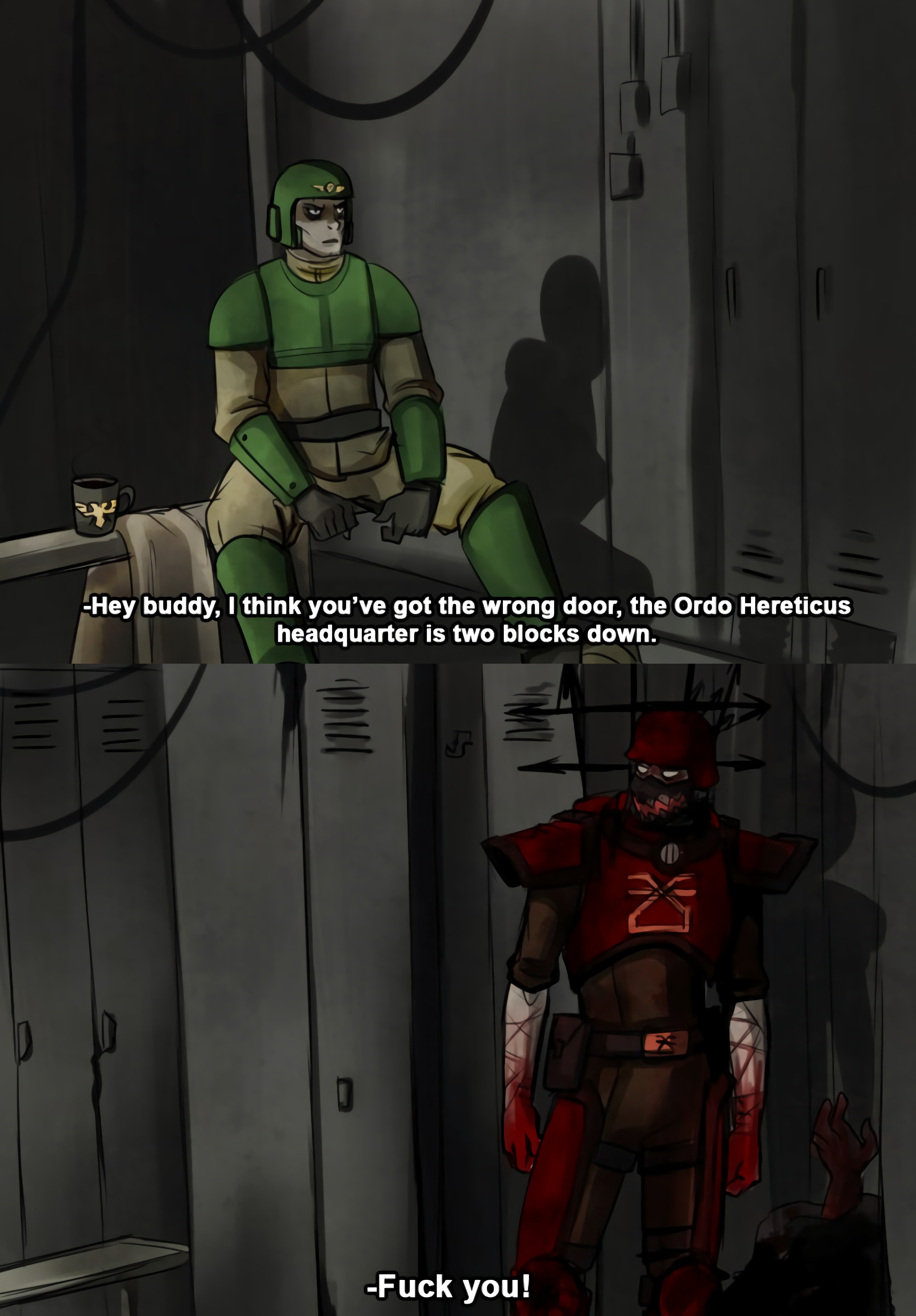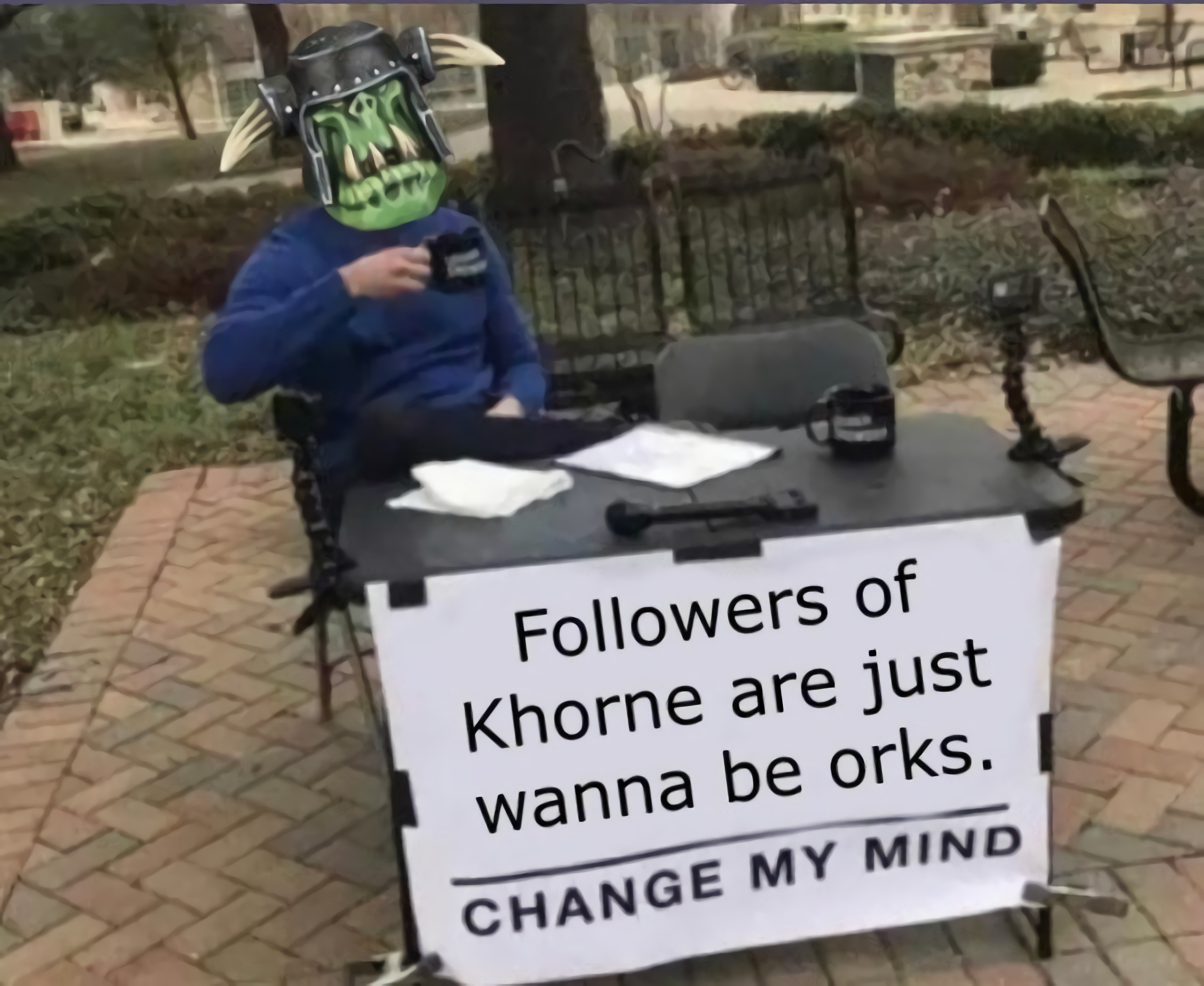 С точки зрения лоялизма, выбор очевиден, левое предпочтительно. Там, хоть и, возможно, слегка мутировавшие, но люди, ебут и убивают ксеносов; справа 100% ксеносы, обвешанные человеческими трофеями, доставшиеся им, вероятно, после уничтожения всех людей в зоне их досягаемости.